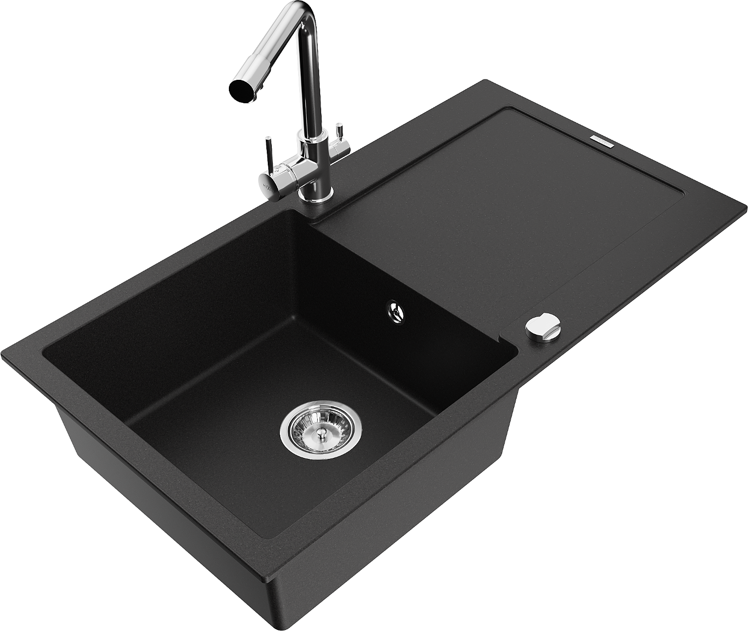 Mexen Leo zlewozmywak granitowy 1-komorowy z ociekaczem i baterią kuchenną Duero, czarny - 6501-77-671600-00