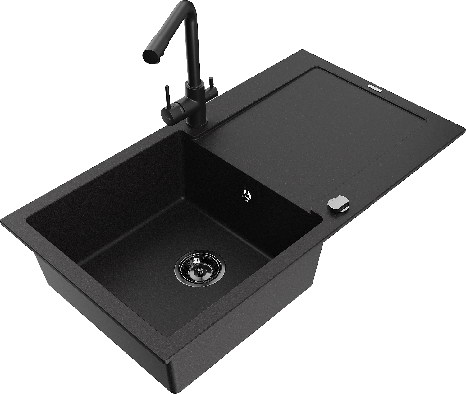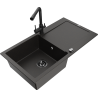 Mexen Leo zlewozmywak granitowy 1-komorowy z ociekaczem i baterią kuchenną Duero, czarny - 6501-77-671600-70-B
