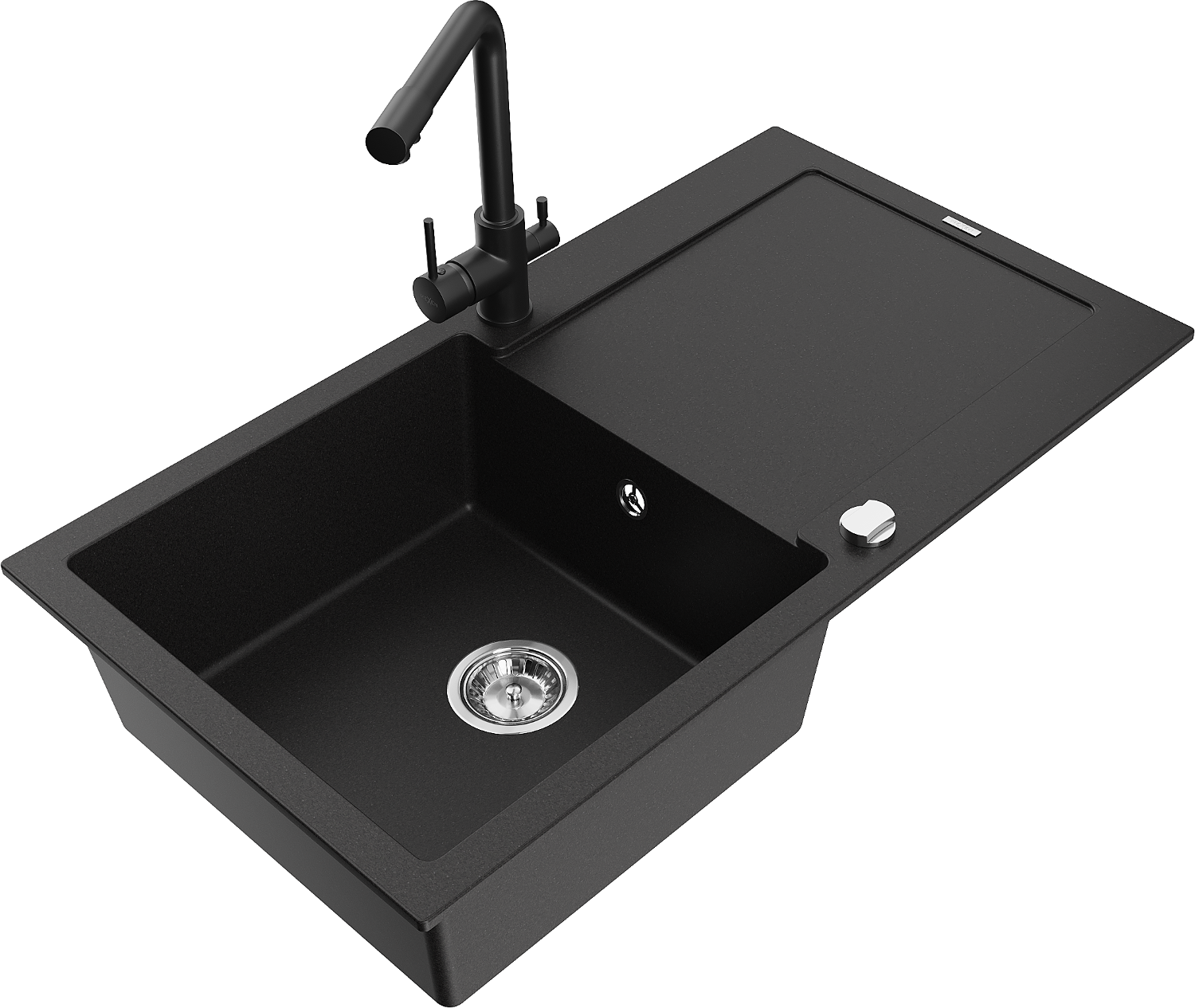 Mexen Leo zlewozmywak granitowy 1-komorowy z ociekaczem i baterią kuchenną Duero, czarny - 6501-77-671600-70