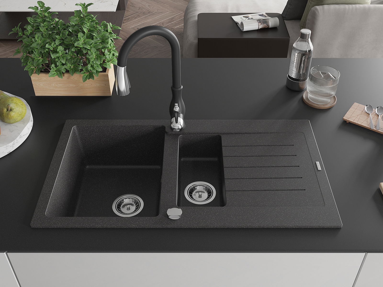 Zlewozmywak został wykonany z wysokiej jakości granitu. Stanowi eleganckie, a przede wszystkim praktyczne uzupełnienie każdej kuchni, niezależnie od jej stylu. Wysoka jakość oraz trwałość granitu zapewniają wieloletnie użytkowanie.