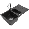 Mexen Matias zlewozmywak granitowy 1,5-komorowy z ociekaczem i baterią kuchenną Rita, szary - 6502-71-670300-00