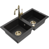 Mexen Mario zlewozmywak granitowy 2-komorowy z baterią kuchenną Carla, czarny nakrapiany - 6504-76-670700-50