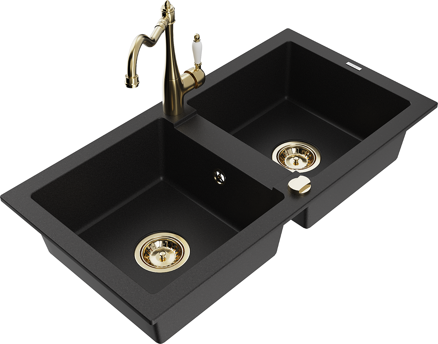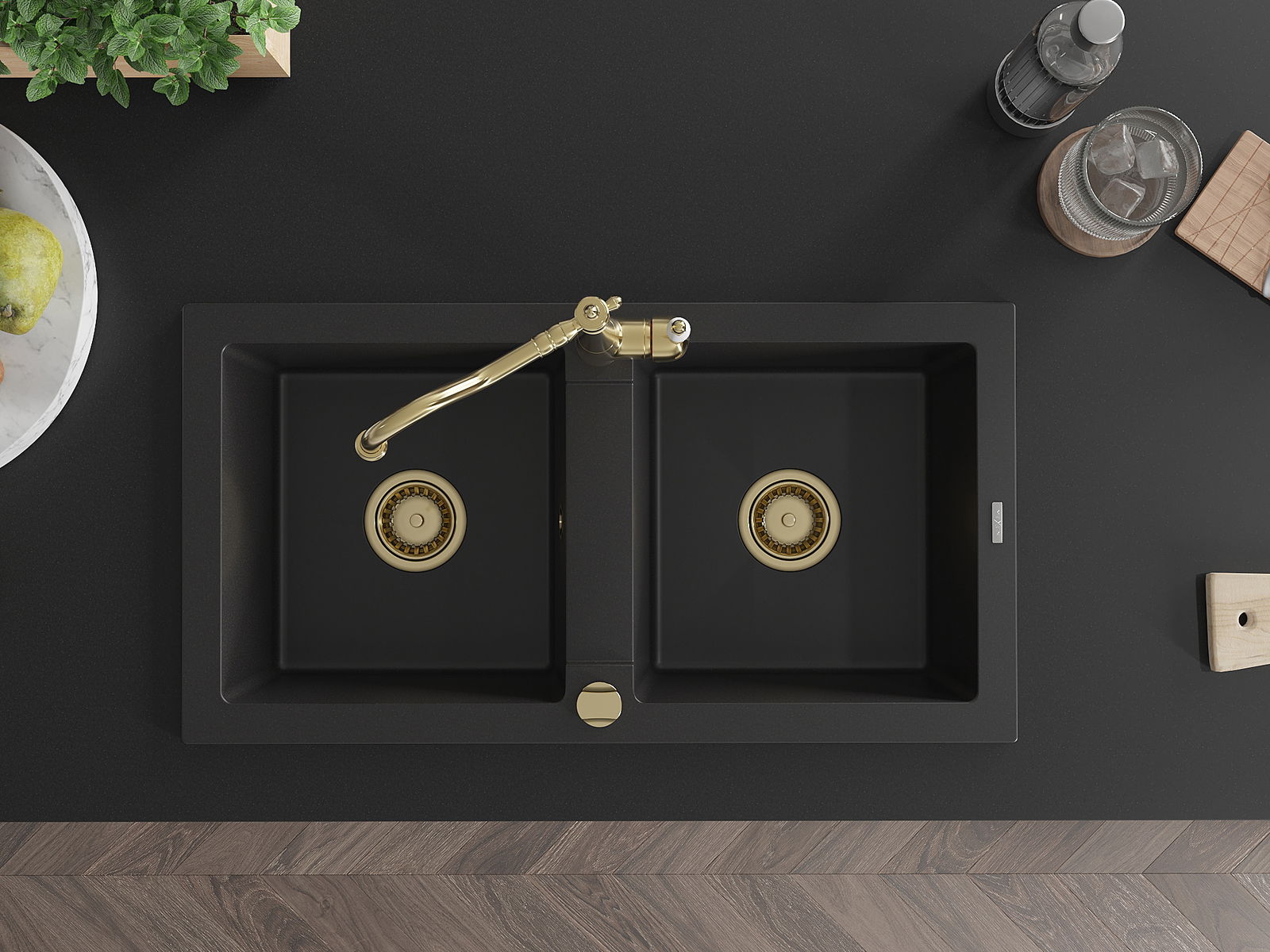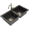 Mexen Mario zlewozmywak granitowy 2-komorowy z baterią kuchenną Carla, czarny - 6504-77-670700-50
