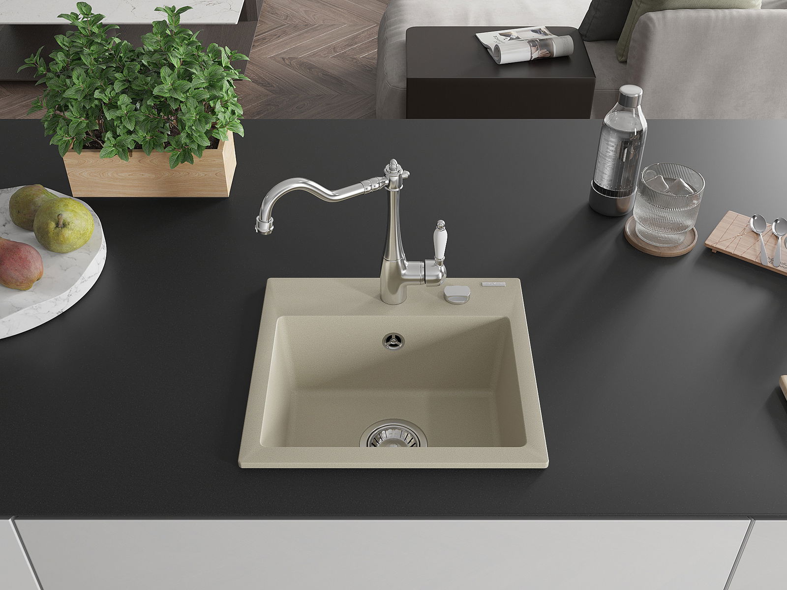 Zlewozmywak został wykonany z wysokiej jakości granitu. Stanowi eleganckie, a przede wszystkim praktyczne uzupełnienie każdej kuchni, niezależnie od jej stylu. Wysoka jakość oraz trwałość granitu zapewniają wieloletnie użytkowanie.