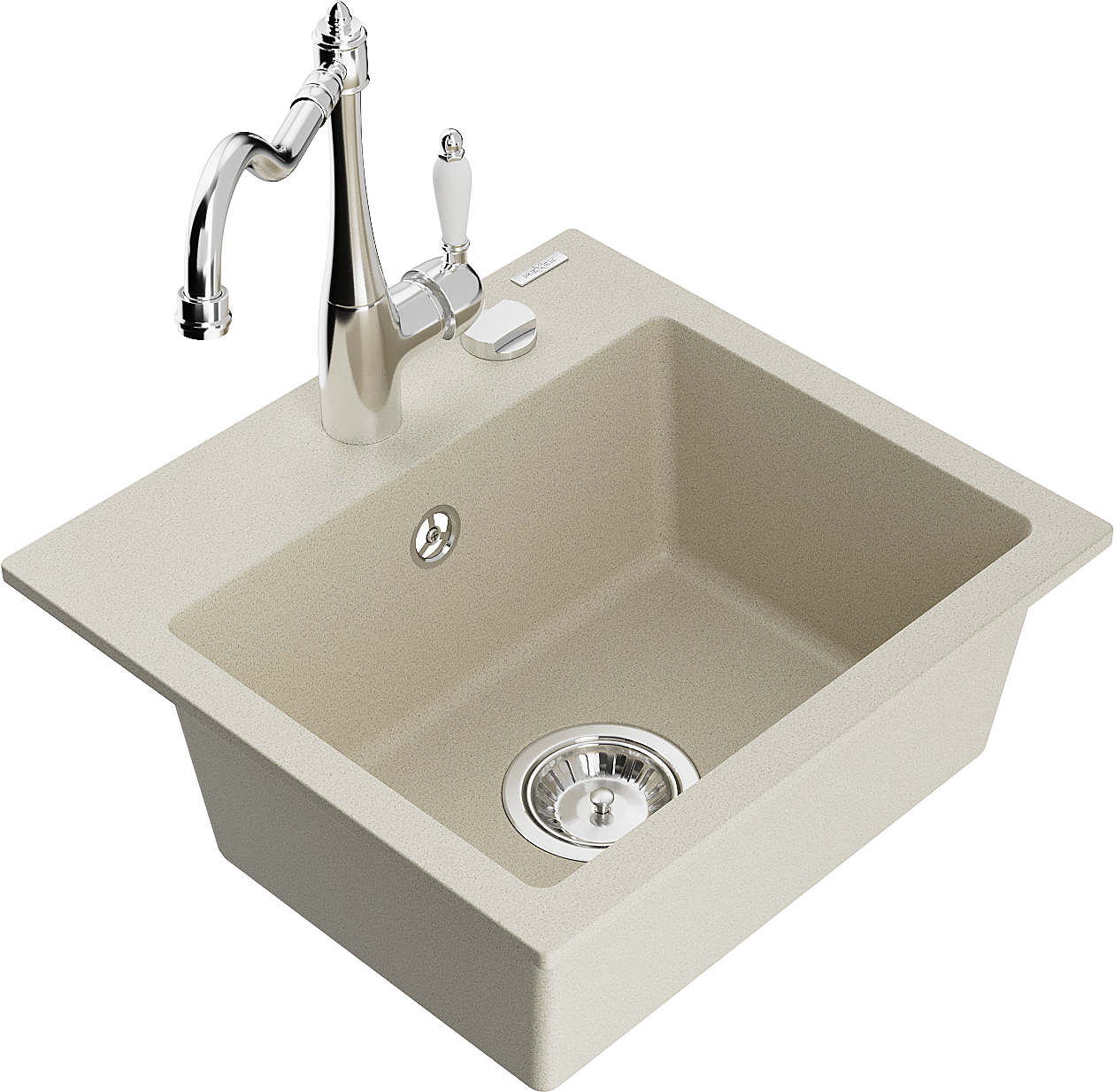 Mexen Milo zlewozmywak granitowy 1-komorowy z baterią kuchenną Carla, beżowy - 6505-69-670700-00