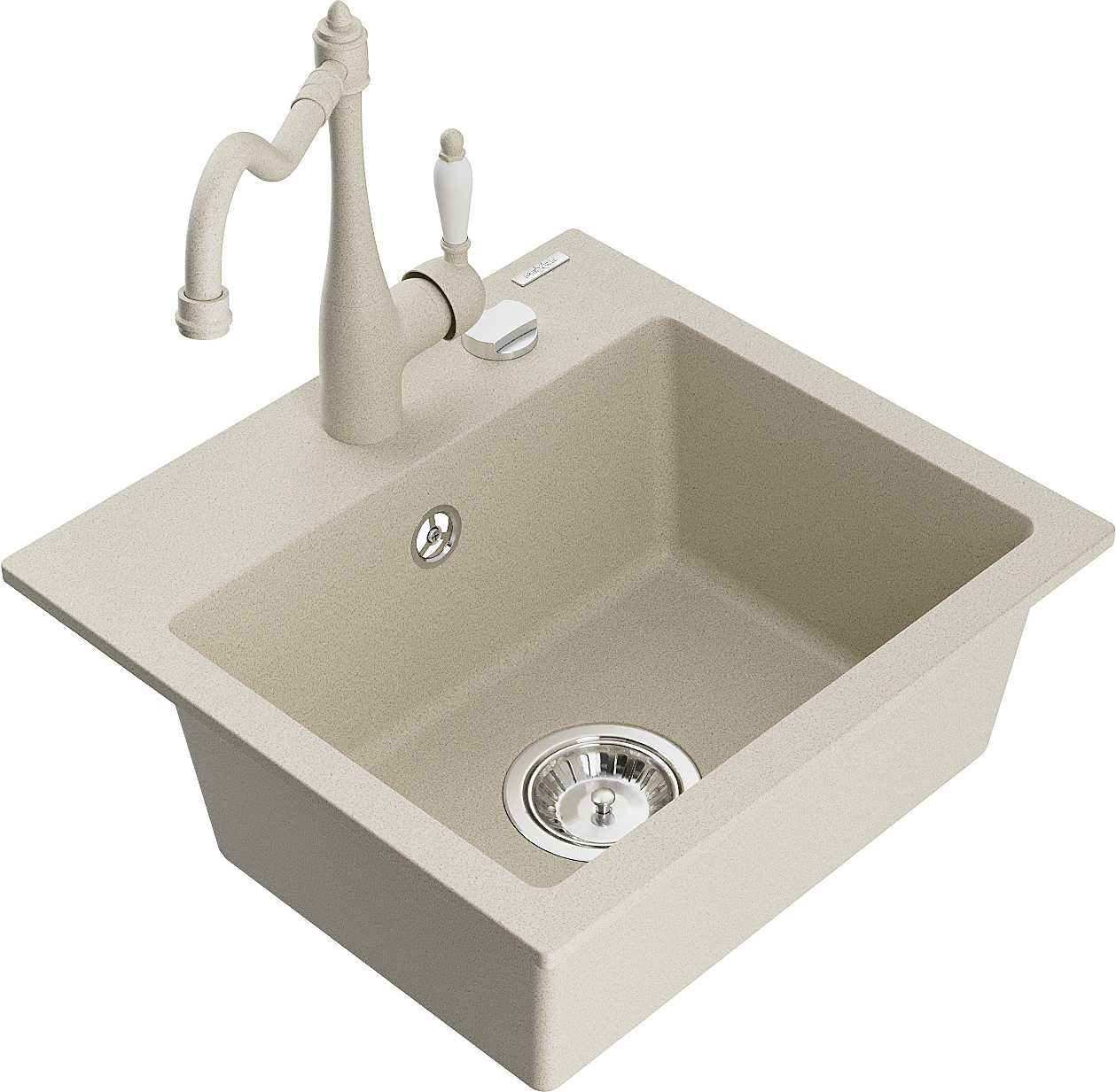 Mexen Milo zlewozmywak granitowy 1-komorowy z baterią kuchenną Carla, beżowy - 6505-69-670700-69
