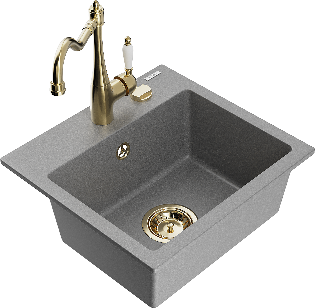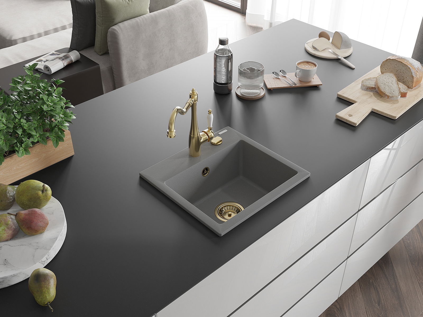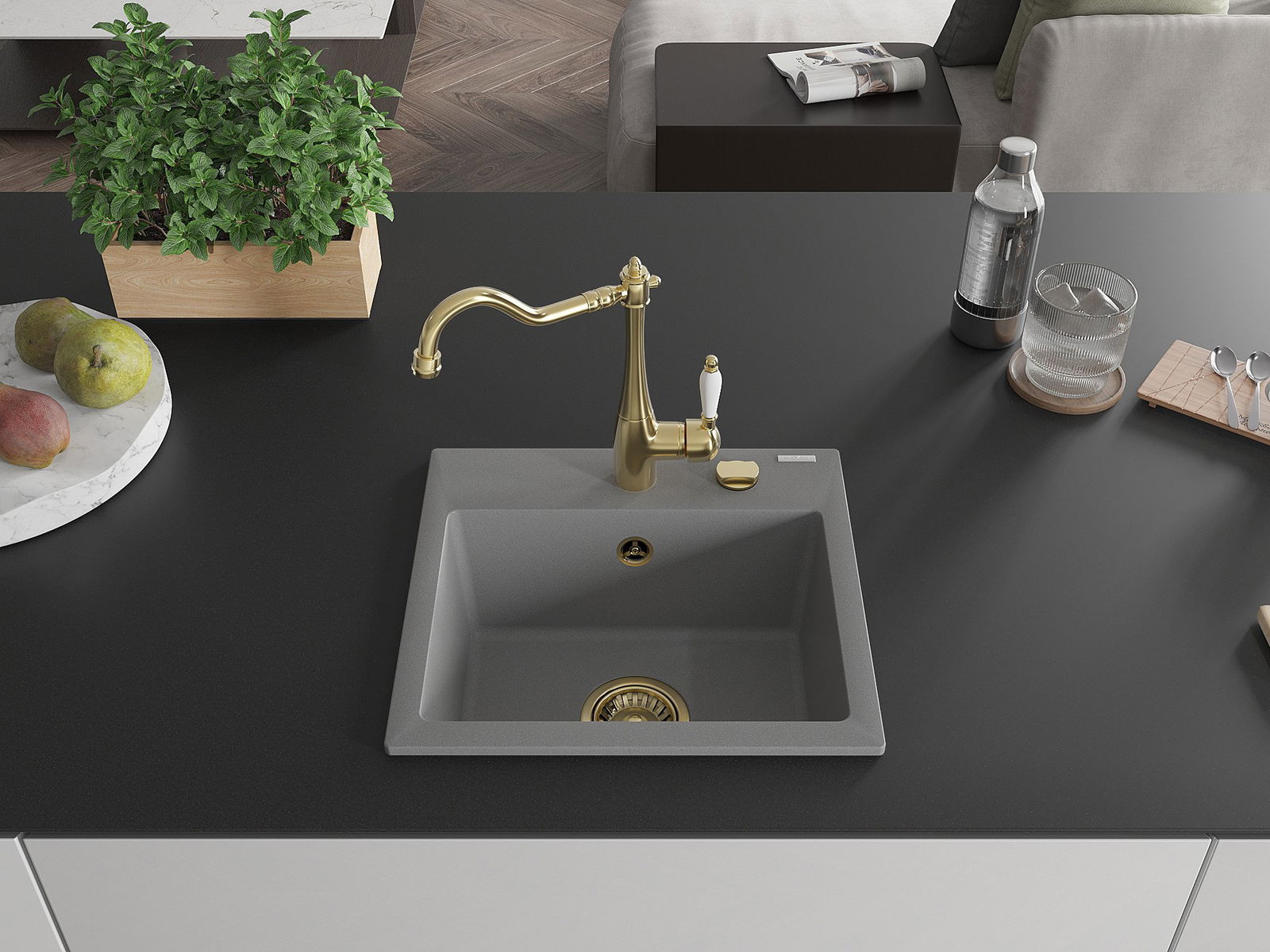 Mexen Milo zlewozmywak granitowy 1-komorowy z baterią kuchenną Carla, szary - 6505-71-670700-50