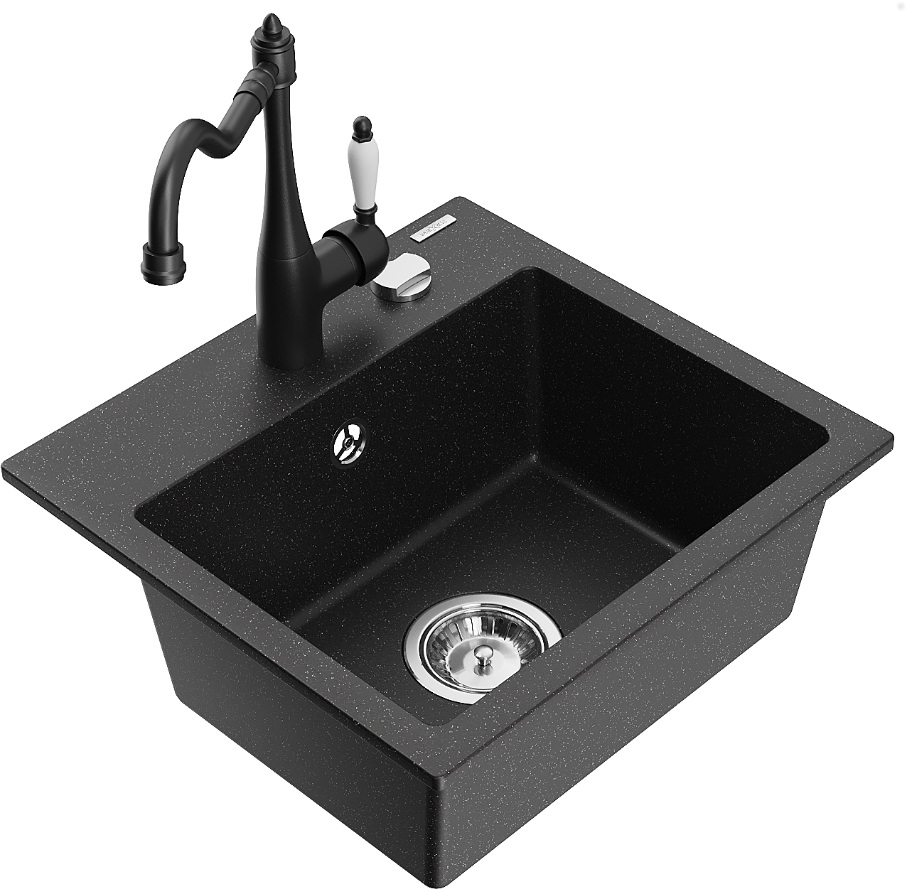 Mexen Milo zlewozmywak granitowy 1-komorowy z baterią kuchenną Carla, czarny/srebrny metalik - 6505-73-670700-70