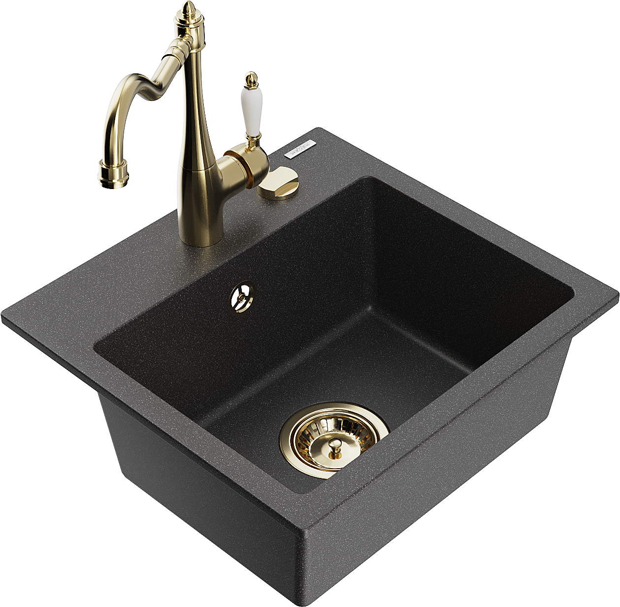 Mexen Milo zlewozmywak granitowy 1-komorowy z baterią kuchenną Carla, czarny nakrapiany - 6505-76-670700-50