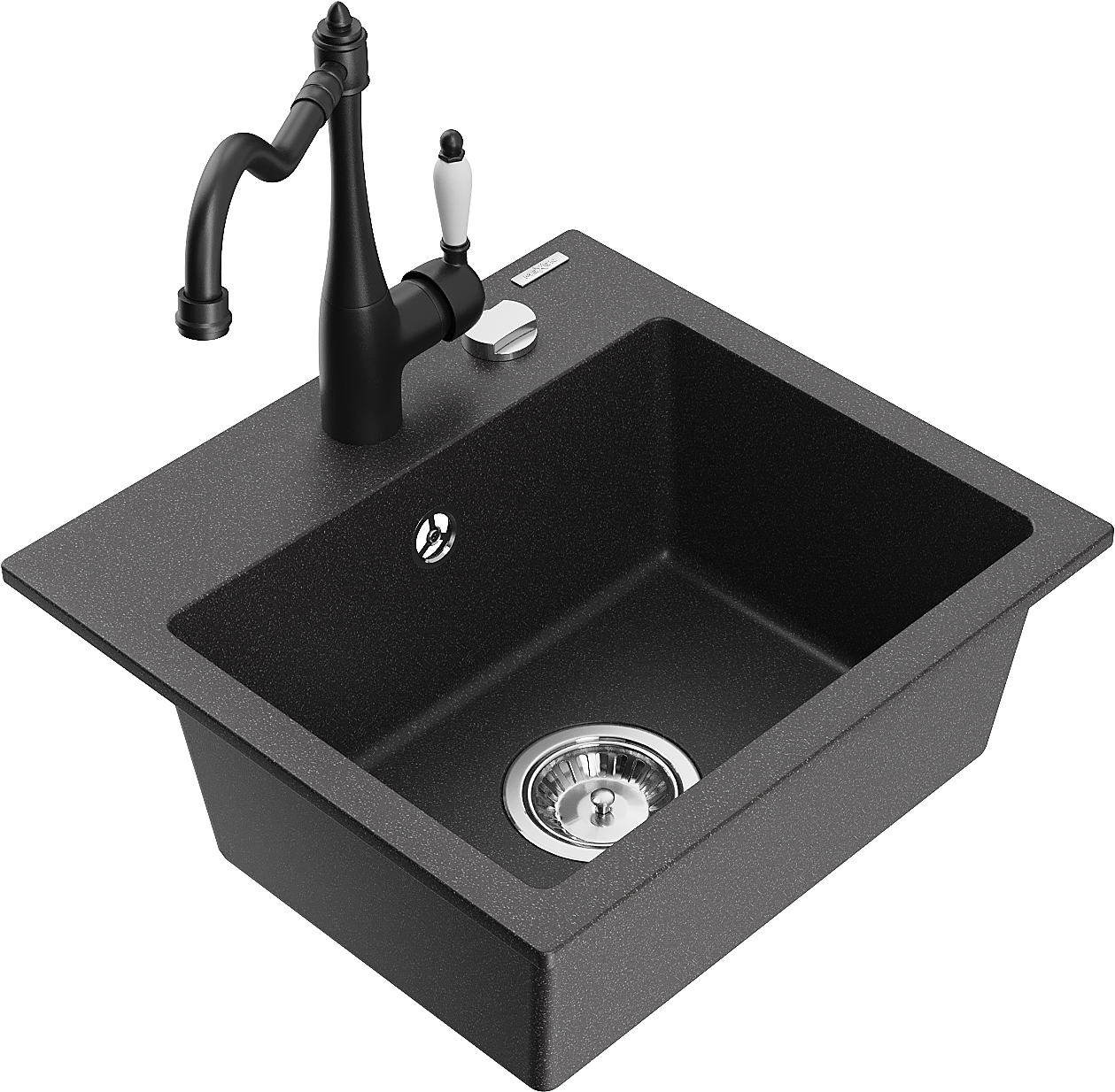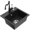 Mexen Milo zlewozmywak granitowy 1-komorowy z baterią kuchenną Carla, czarny nakrapiany - 6505-76-670700-70