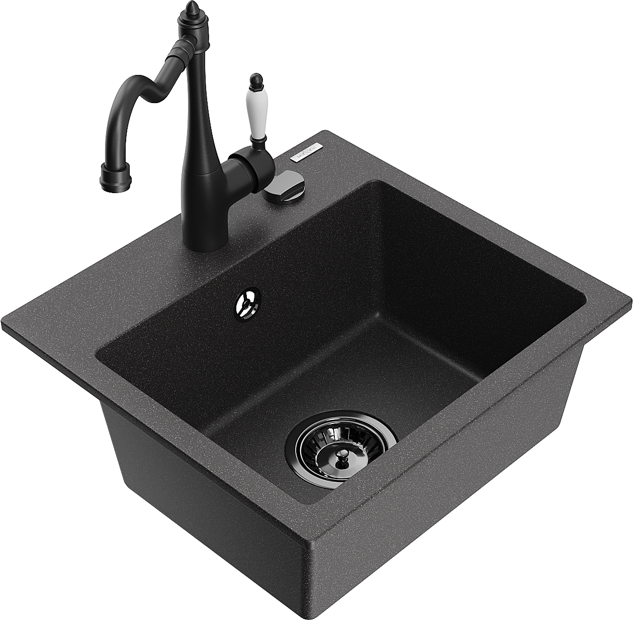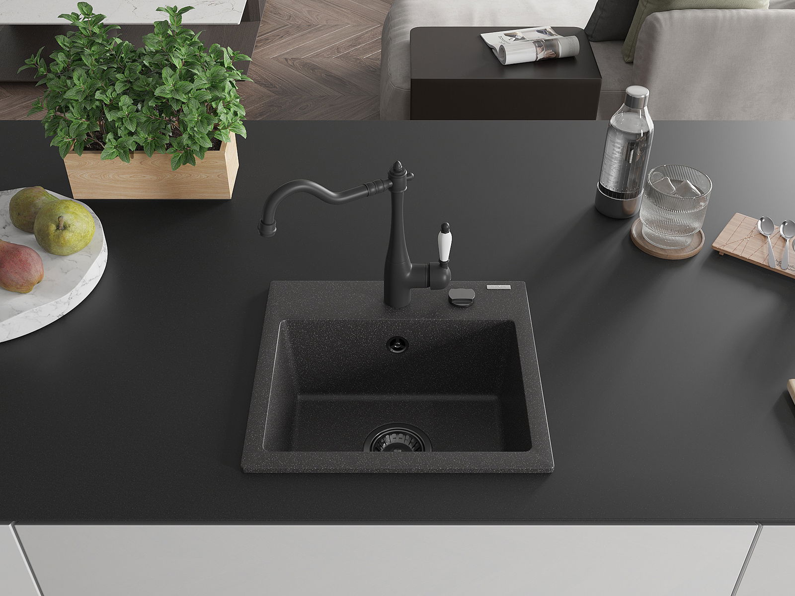 Mexen Milo zlewozmywak granitowy 1-komorowy z baterią kuchenną Carla, czarny nakrapiany - 6505-76-670700-70-B