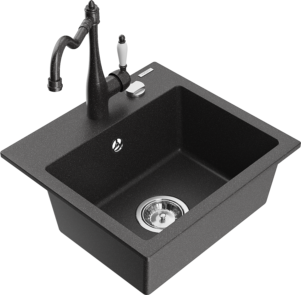 Mexen Milo zlewozmywak granitowy 1-komorowy z baterią kuchenną Carla, czarny nakrapiany - 6505-76-670700-76