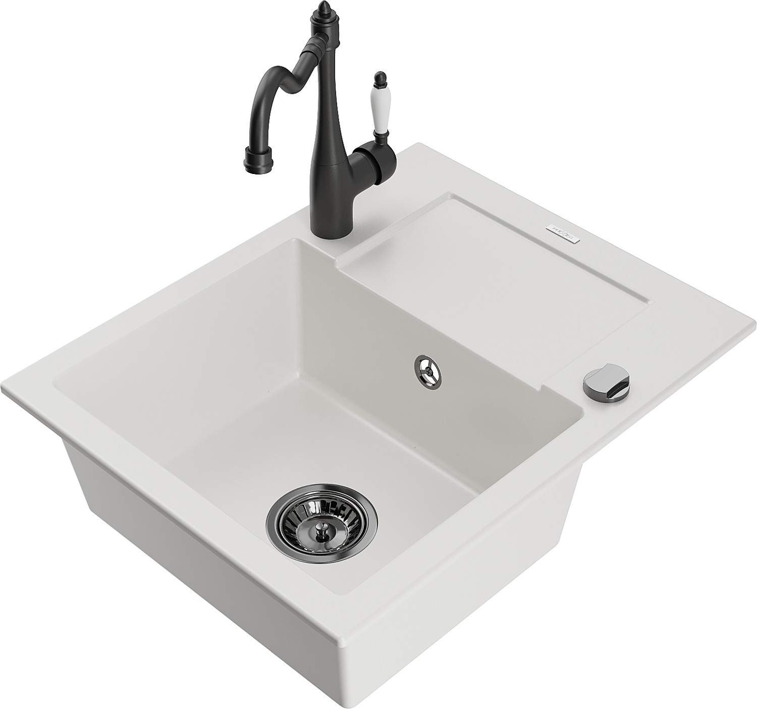 Mexen Enzo zlewozmywak granitowy 1-komorowy z ociekaczem i baterią kuchenną Carla, biały - 6506-20-670700-70
