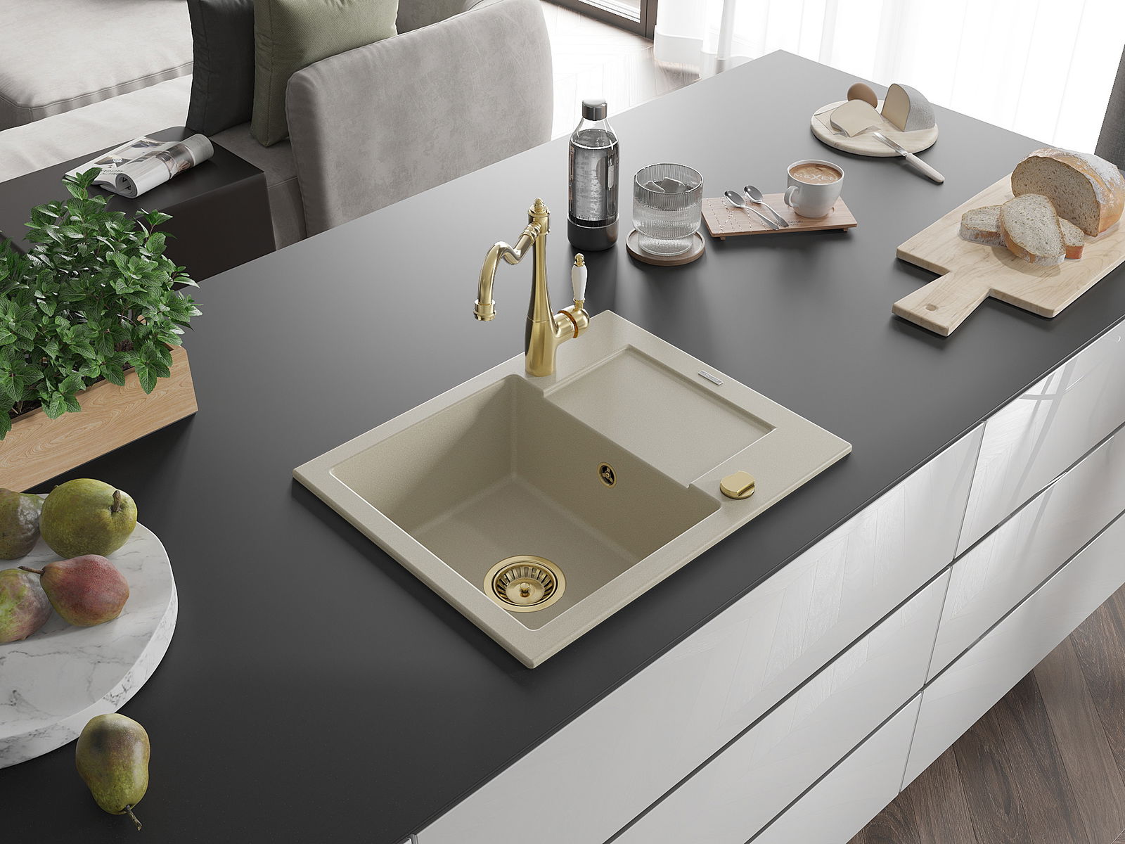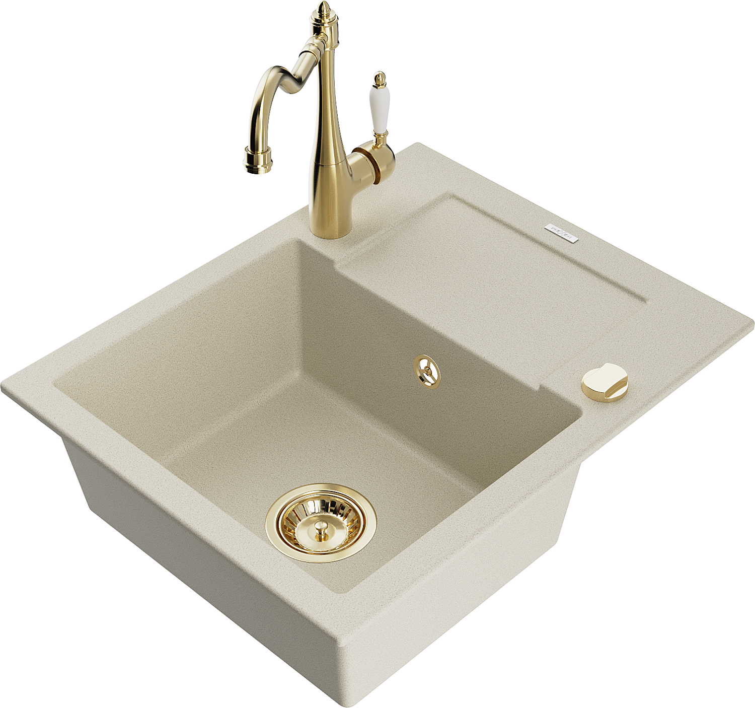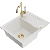Mexen Enzo zlewozmywak granitowy 1-komorowy z ociekaczem i baterią kuchenną Carla, beżowy - 6506-69-670700-50