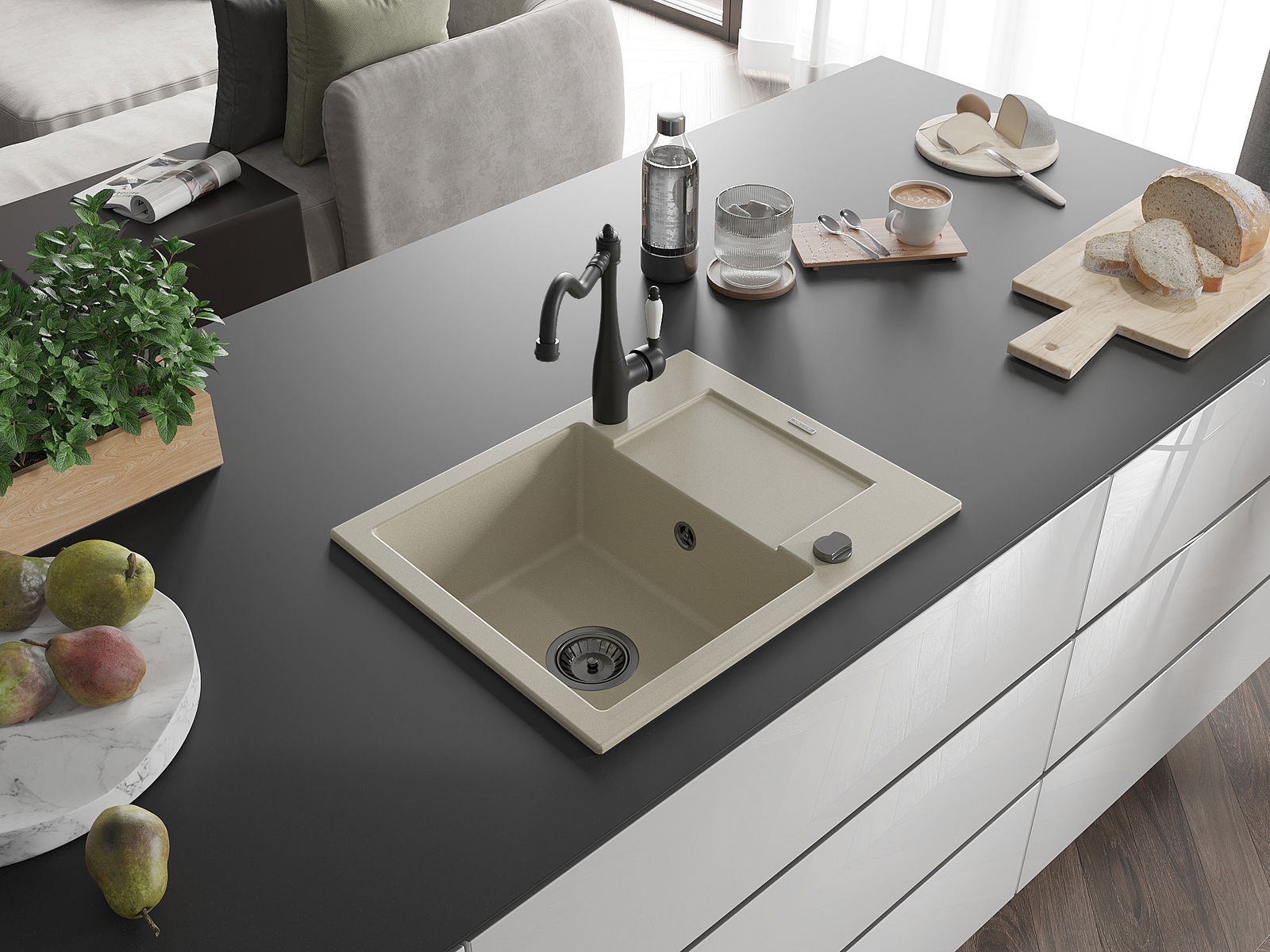Zlewozmywak został wykonany z wysokiej jakości granitu. Stanowi eleganckie, a przede wszystkim praktyczne uzupełnienie każdej kuchni, niezależnie od jej stylu. Wysoka jakość oraz trwałość granitu zapewniają wieloletnie użytkowanie.