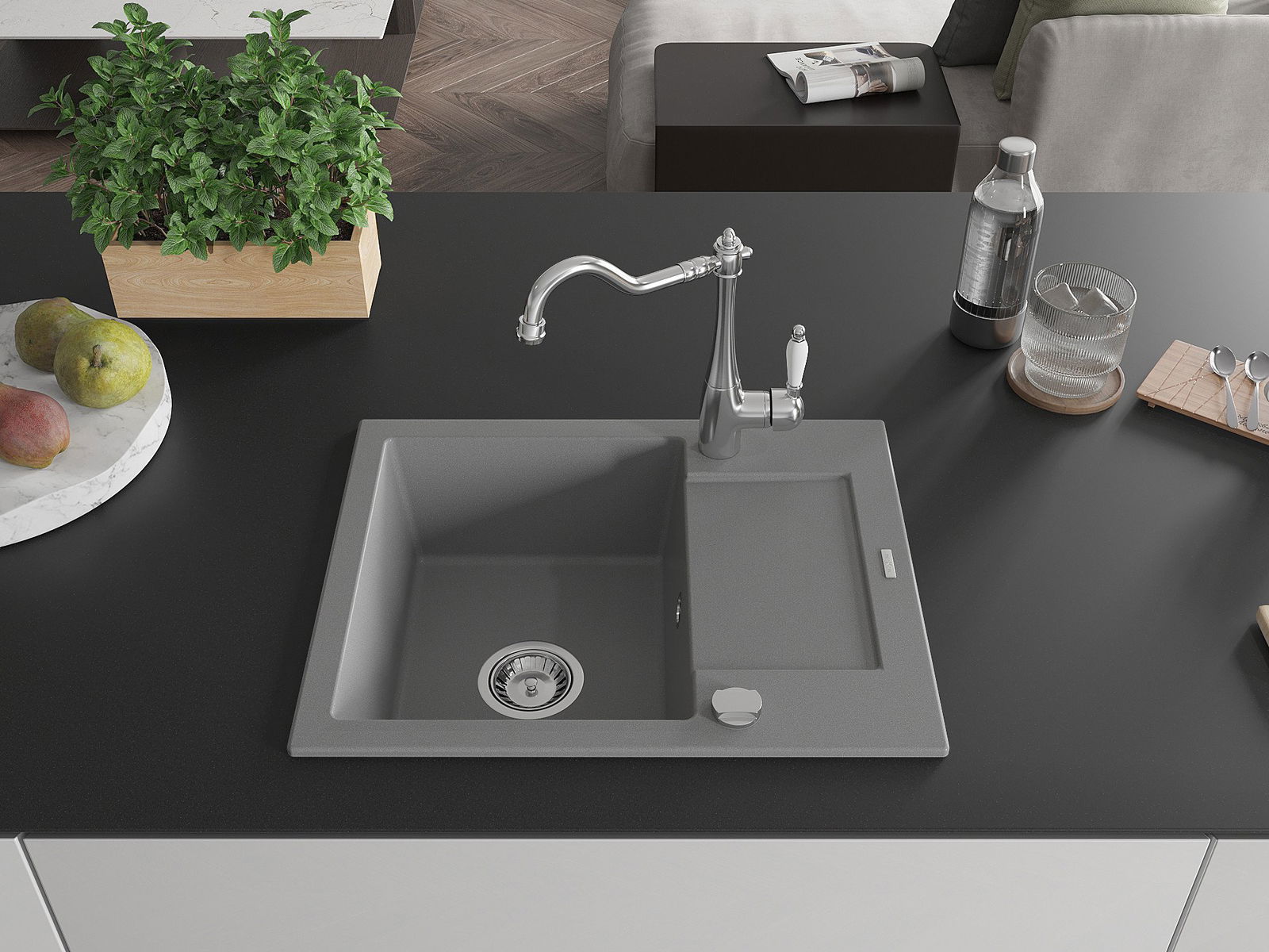 Zlewozmywak został wykonany z wysokiej jakości granitu. Stanowi eleganckie, a przede wszystkim praktyczne uzupełnienie każdej kuchni, niezależnie od jej stylu. Wysoka jakość oraz trwałość granitu zapewniają wieloletnie użytkowanie.