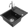 Mexen Enzo zlewozmywak granitowy 1-komorowy z ociekaczem i baterią kuchenną Carla, szary - 6506-71-670700-00