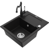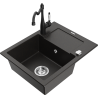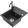 Mexen Enzo zlewozmywak granitowy 1-komorowy z ociekaczem i baterią kuchenną Carla, szary - 6506-71-670700-70