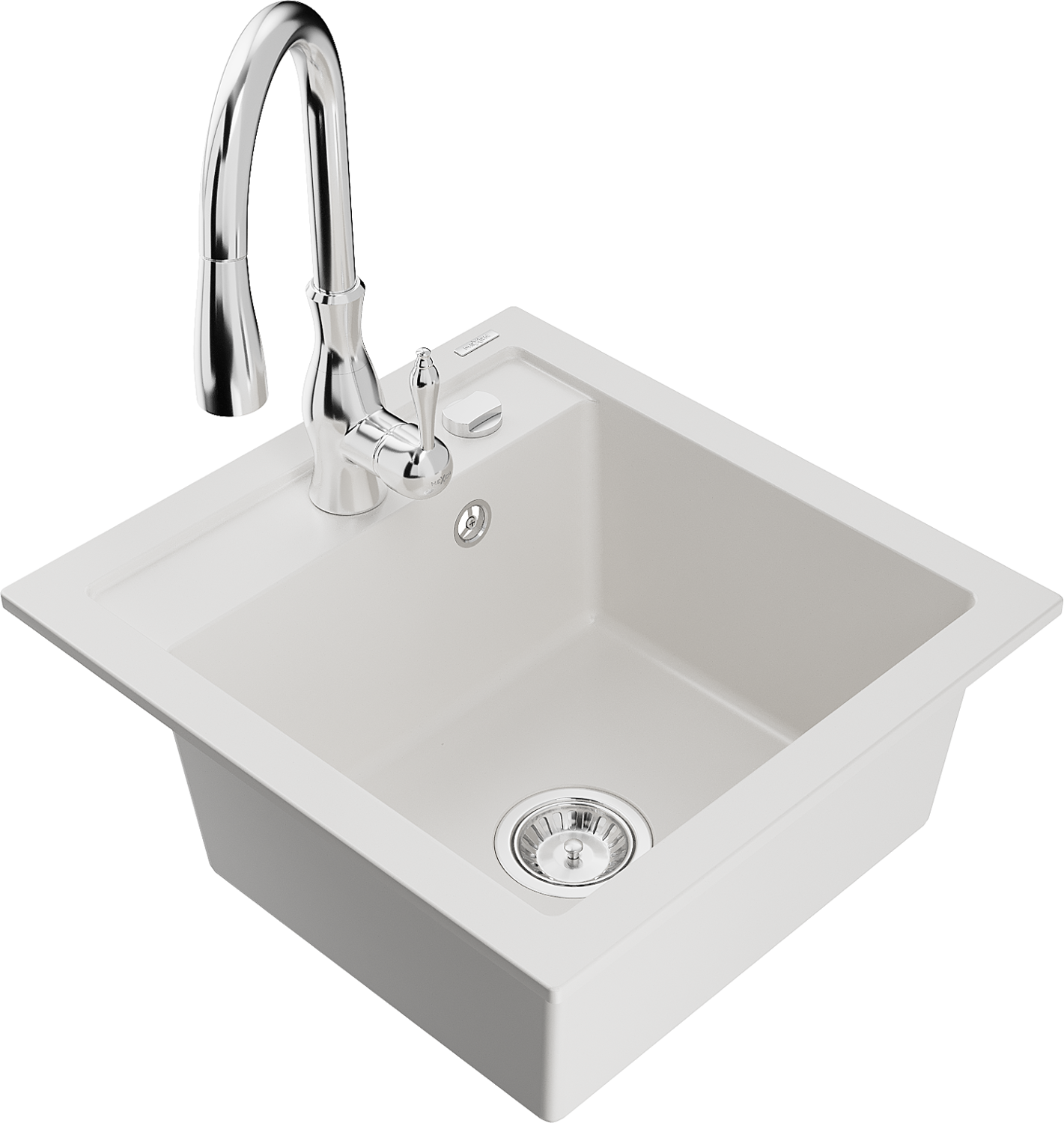 Mexen Vito zlewozmywak granitowy 1-komorowy z baterią kuchenną Savita, biały - 6503-20-672601-00