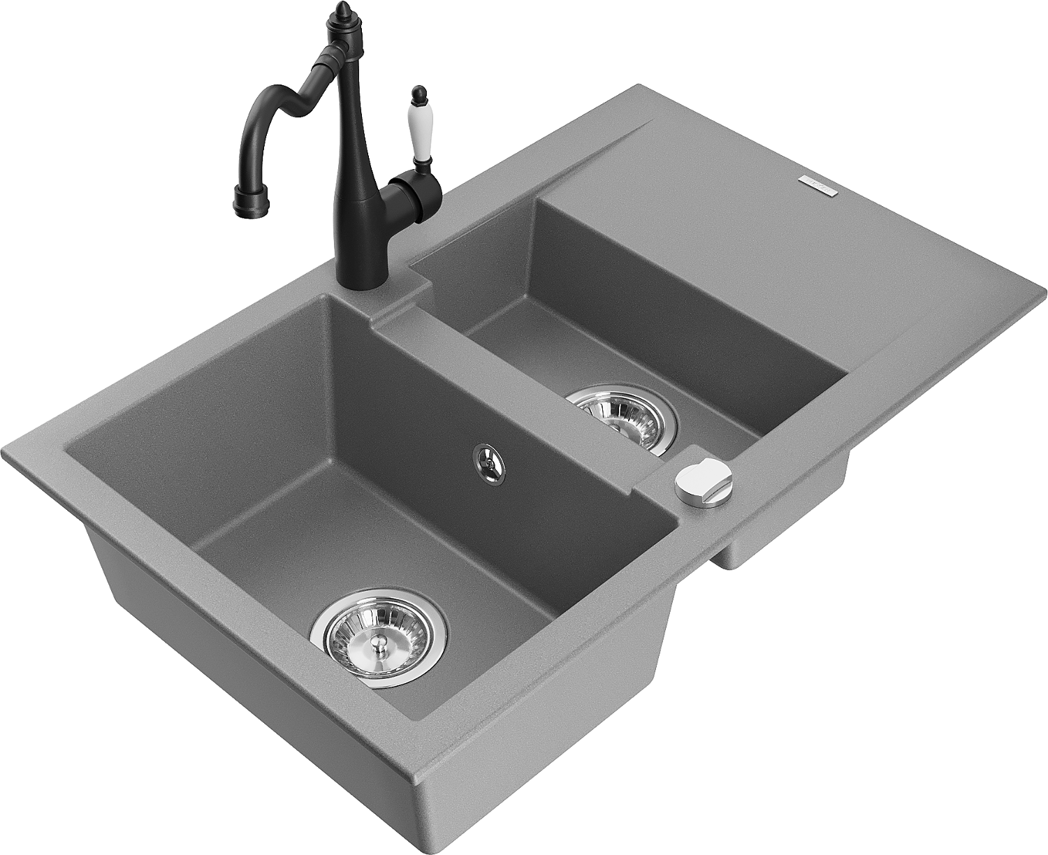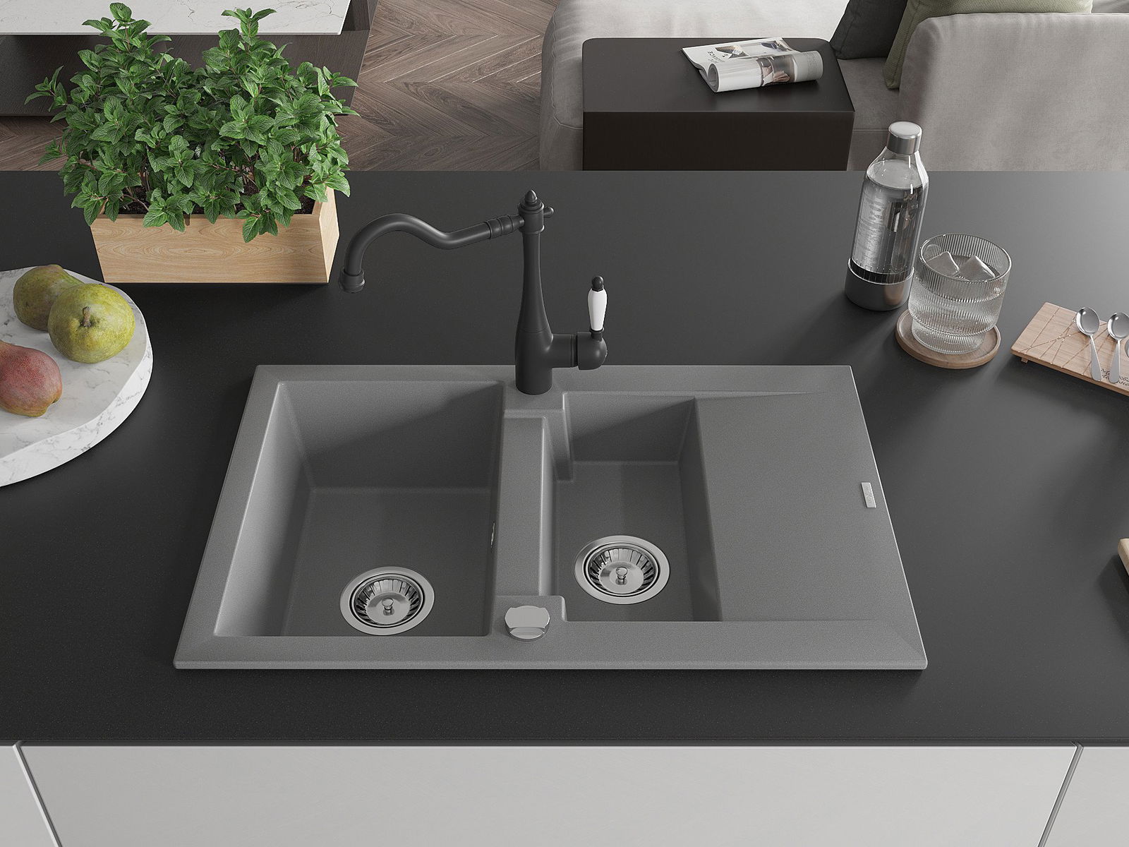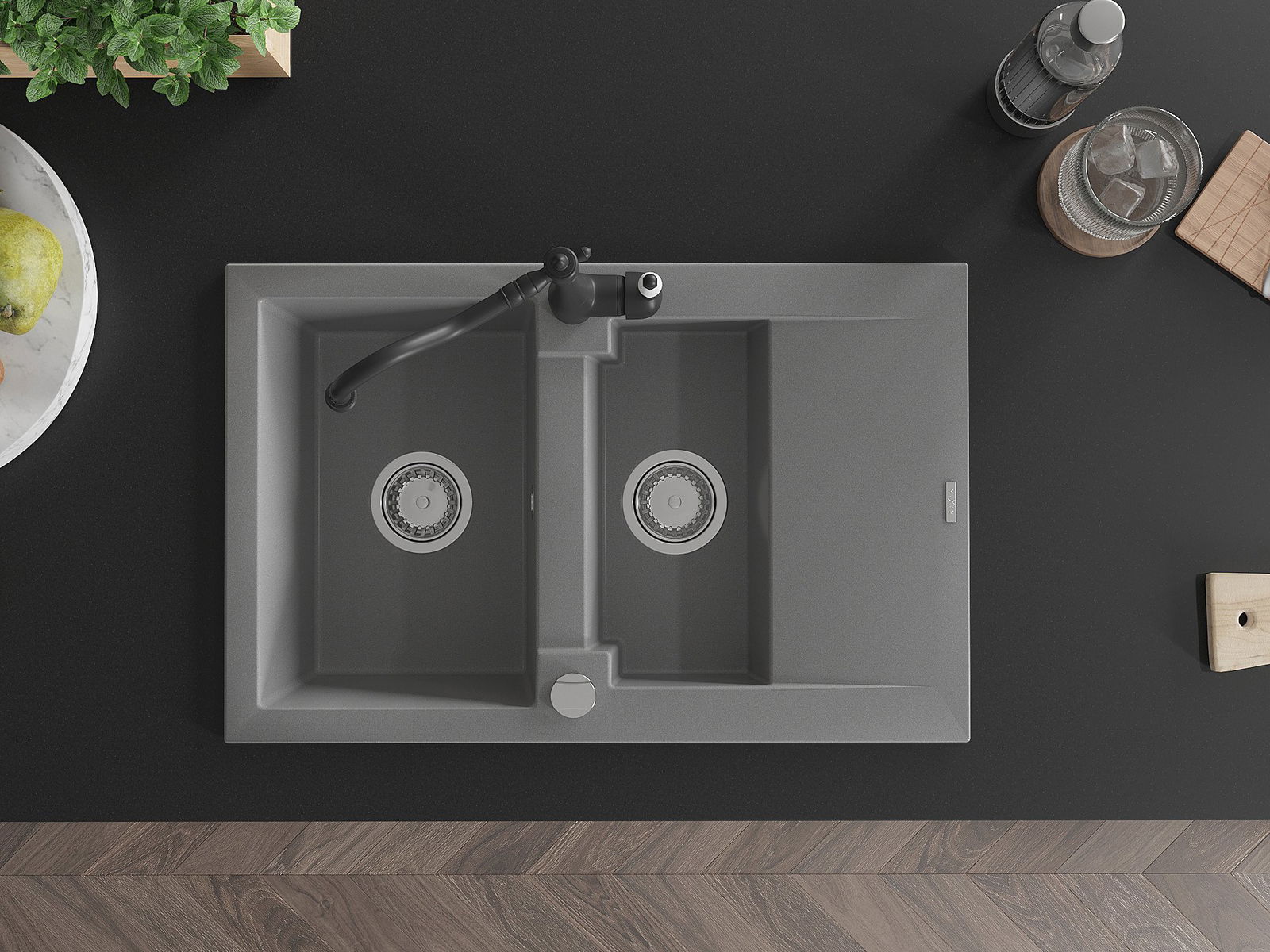 Mexen Gaspar zlewozmywak granitowy 1,5-komorowy z ociekaczem i baterią kuchenną Carla, szary - 6507-71-670700-70