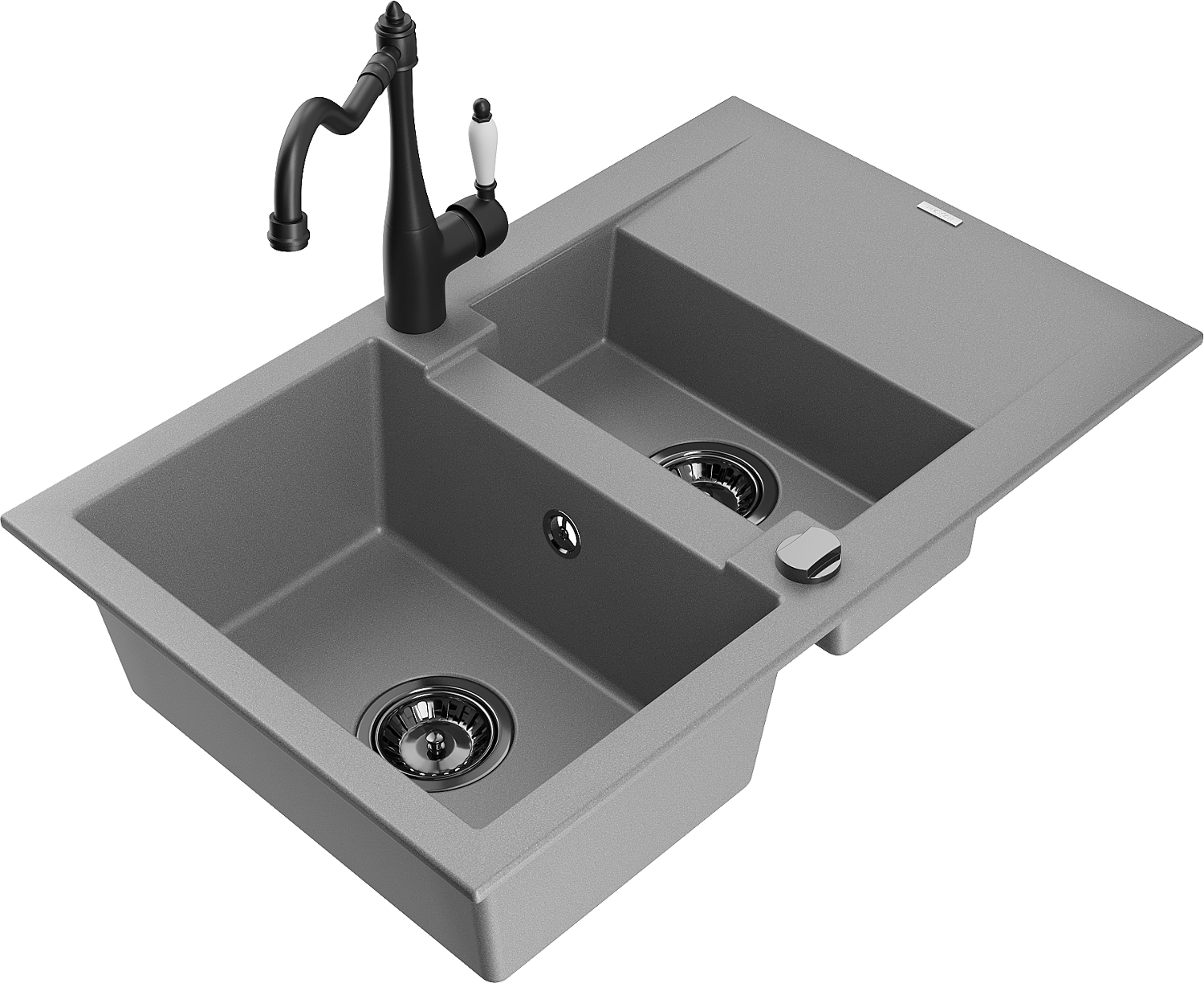 Mexen Gaspar zlewozmywak granitowy 1,5-komorowy z ociekaczem i baterią kuchenną Carla, szary - 6507-71-670700-70-B