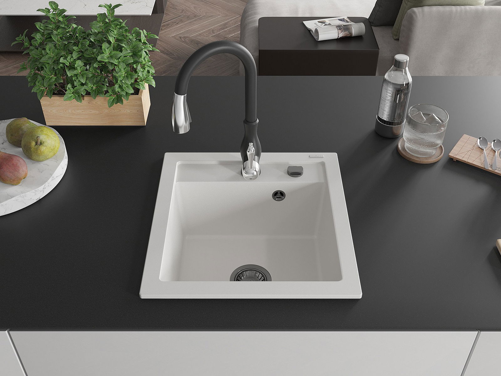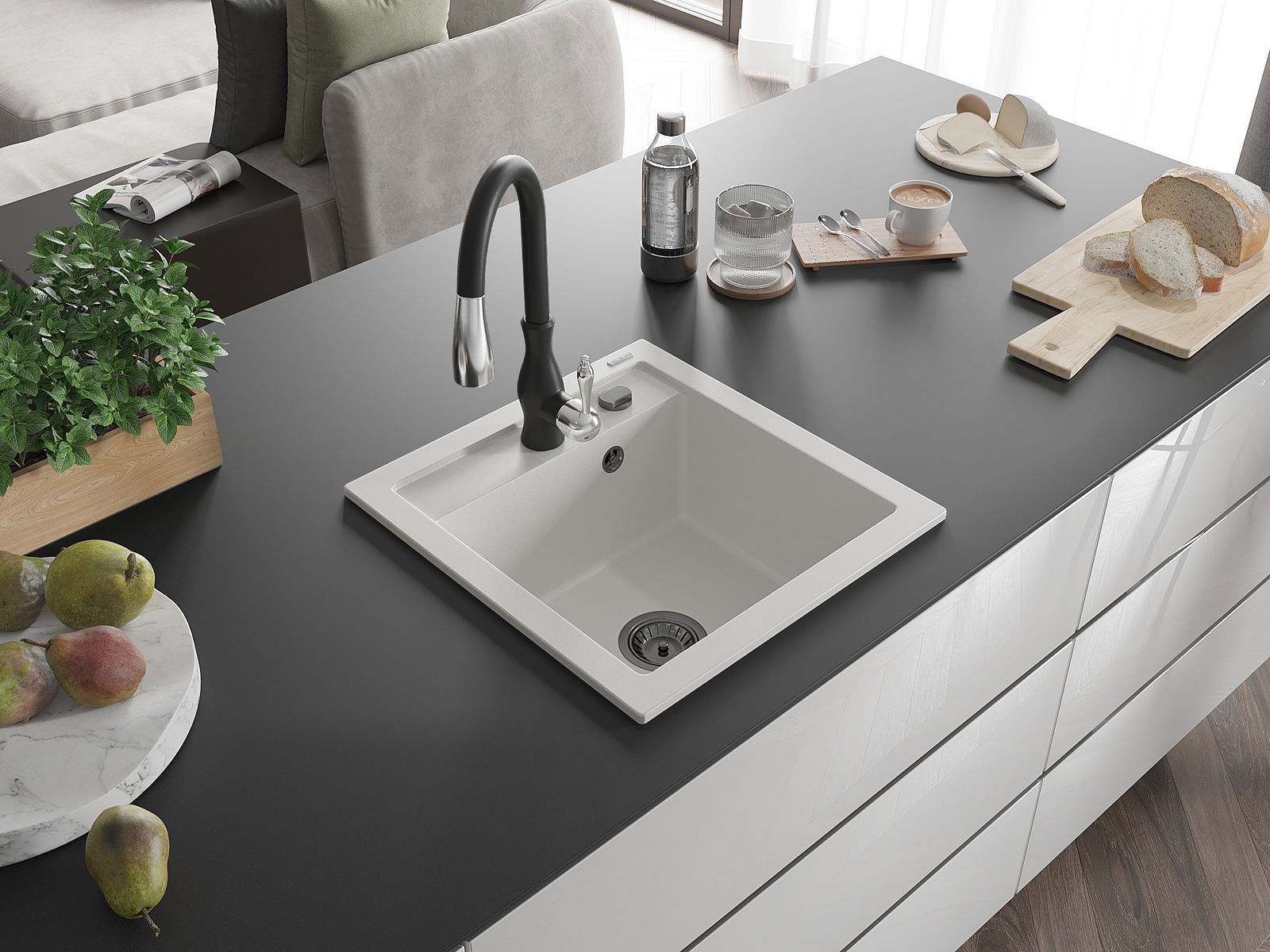 Zlewozmywak został wykonany z wysokiej jakości granitu. Stanowi eleganckie, a przede wszystkim praktyczne uzupełnienie każdej kuchni, niezależnie od jej stylu. Wysoka jakość oraz trwałość granitu zapewniają wieloletnie użytkowanie.