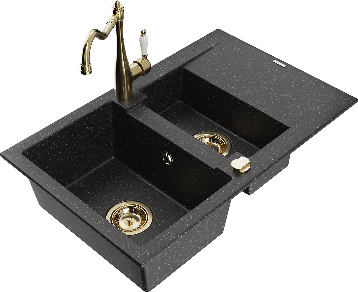 Mexen Gaspar zlewozmywak granitowy 1,5-komorowy z ociekaczem i baterią kuchenną Carla czarny/srebrny metalik - 6507-73-670700-50