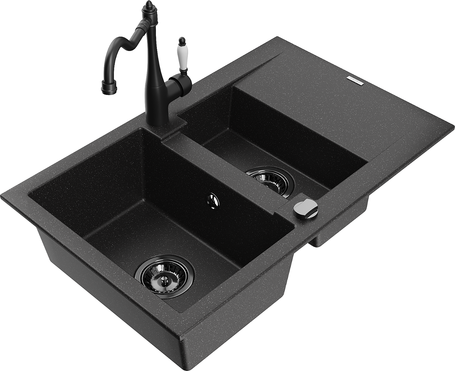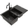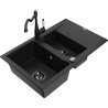 Mexen Gaspar zlewozmywak granitowy 1,5-komorowy z ociekaczem i baterią kuchenną Carla, czarny/srebrny - 6507-73-670700-70-B