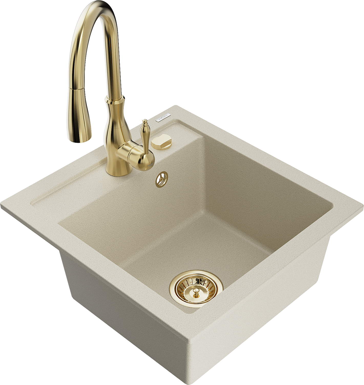 Mexen Vito zlewozmywak granitowy 1-komorowy z baterią kuchenną Savita, beżowy - 6503-69-672601-50