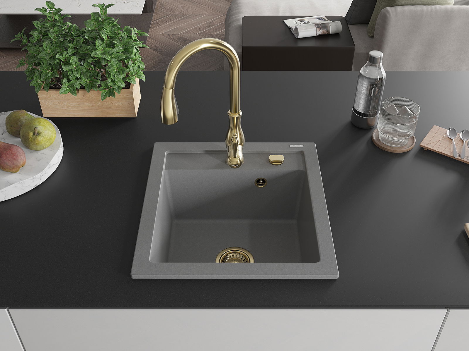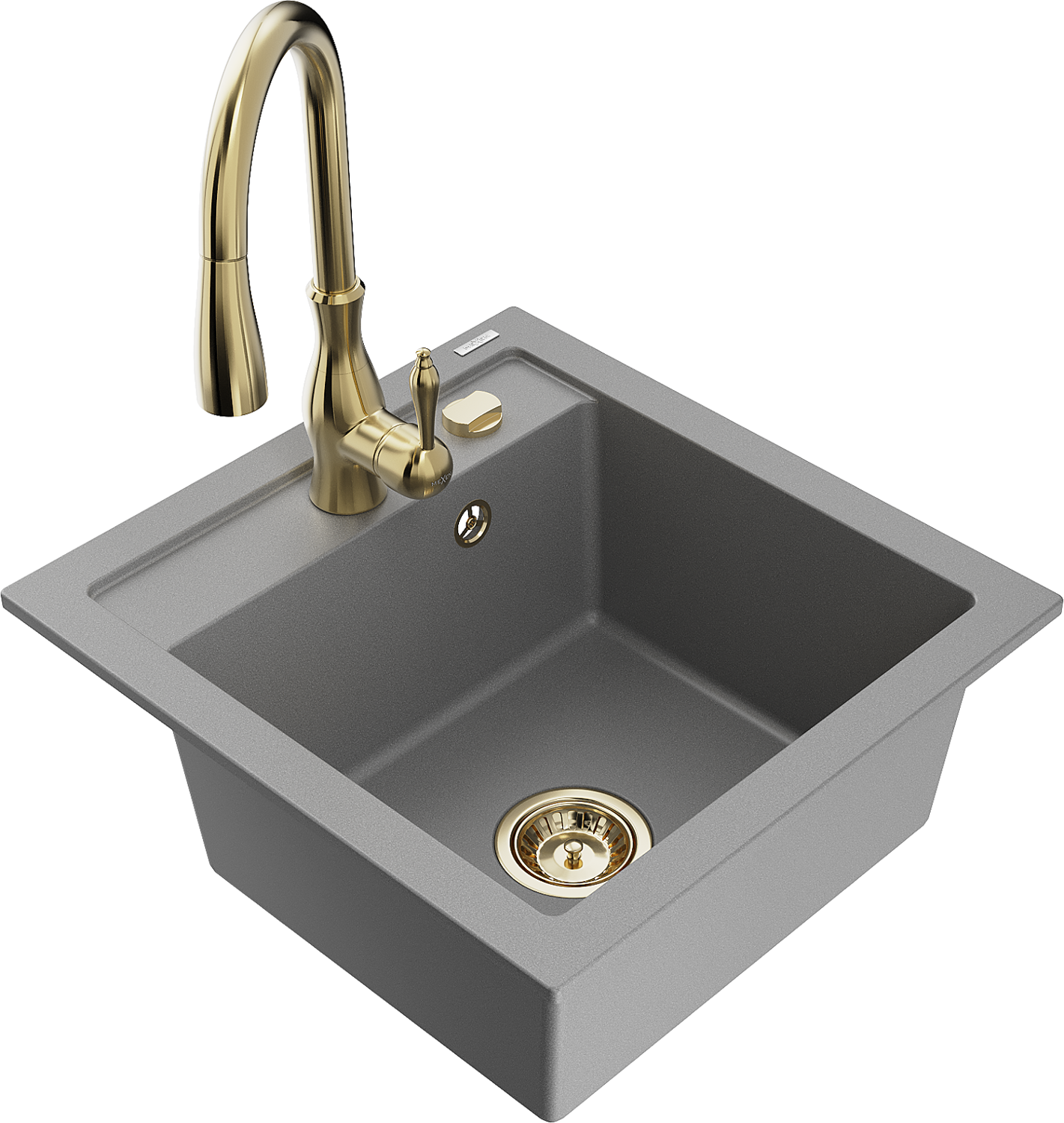 Mexen Vito zlewozmywak granitowy 1-komorowy z baterią kuchenną Savita, szary - 6503-71-672601-50