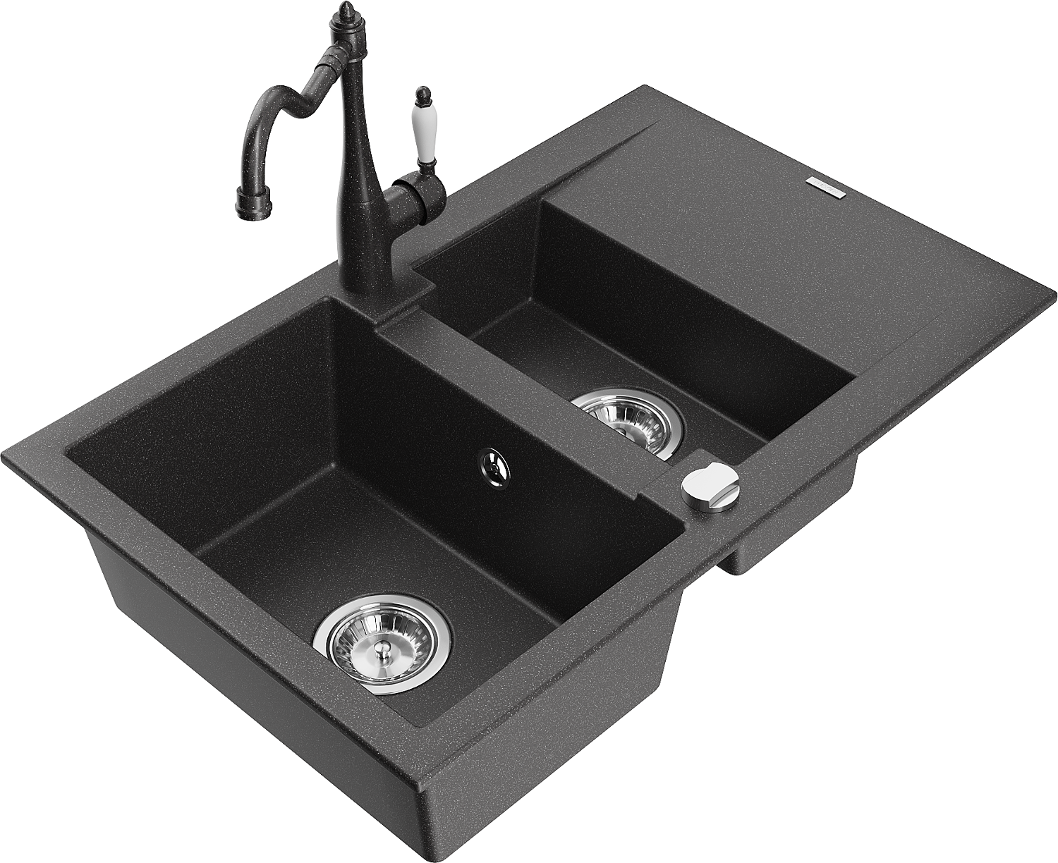 Mexen Gaspar zlewozmywak granitowy 1,5-komorowy z ociekaczem i baterią kuchenną Carla, czarny nakrapiany - 6507-76-670700-76