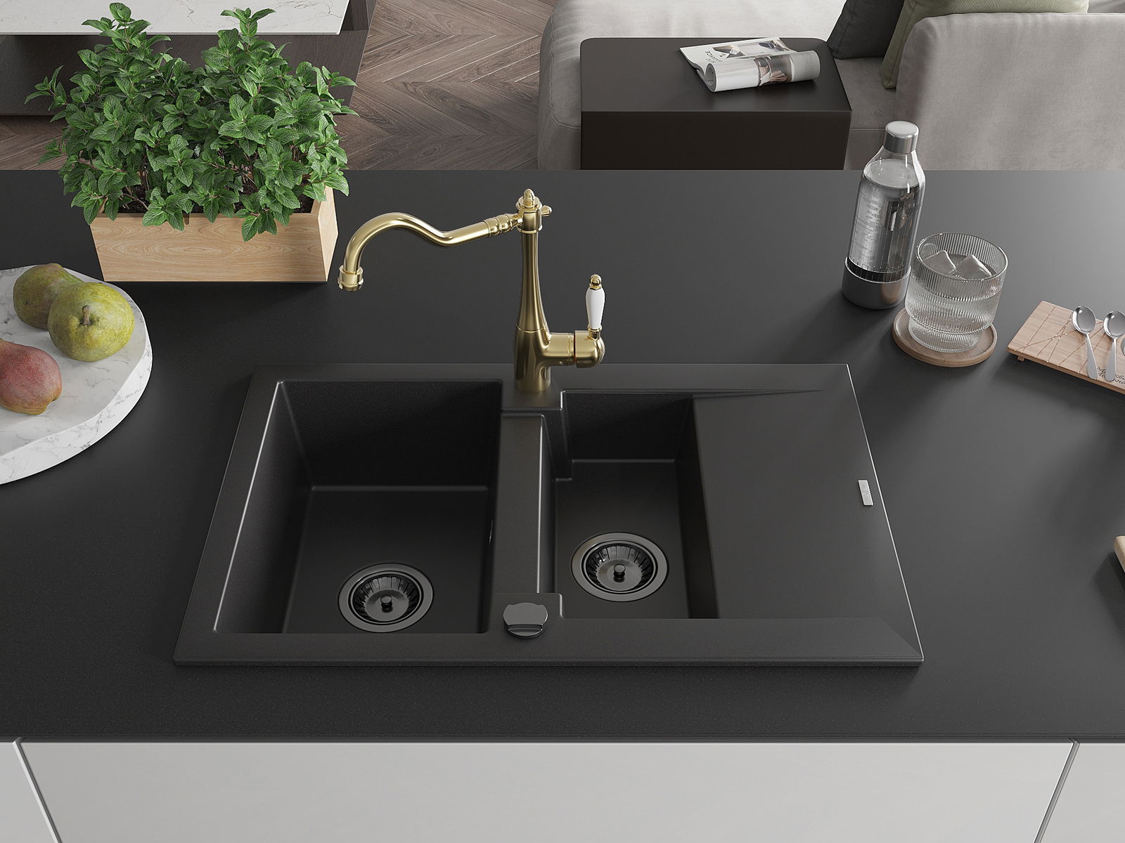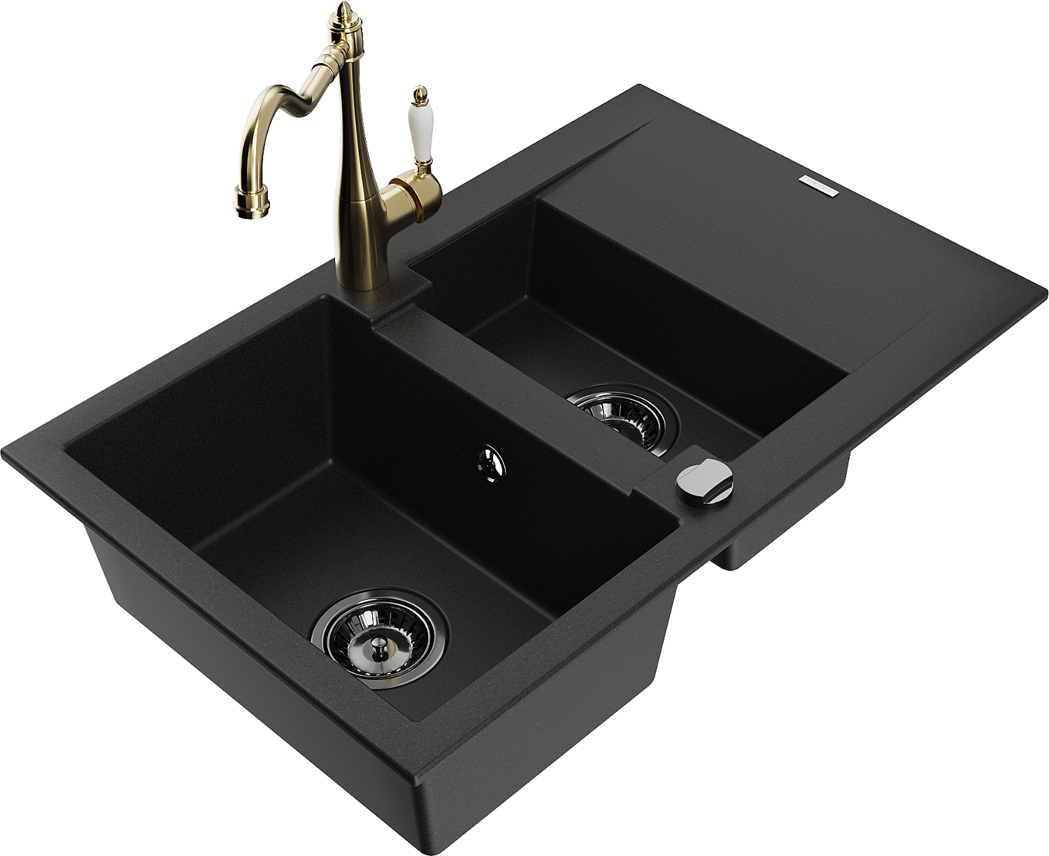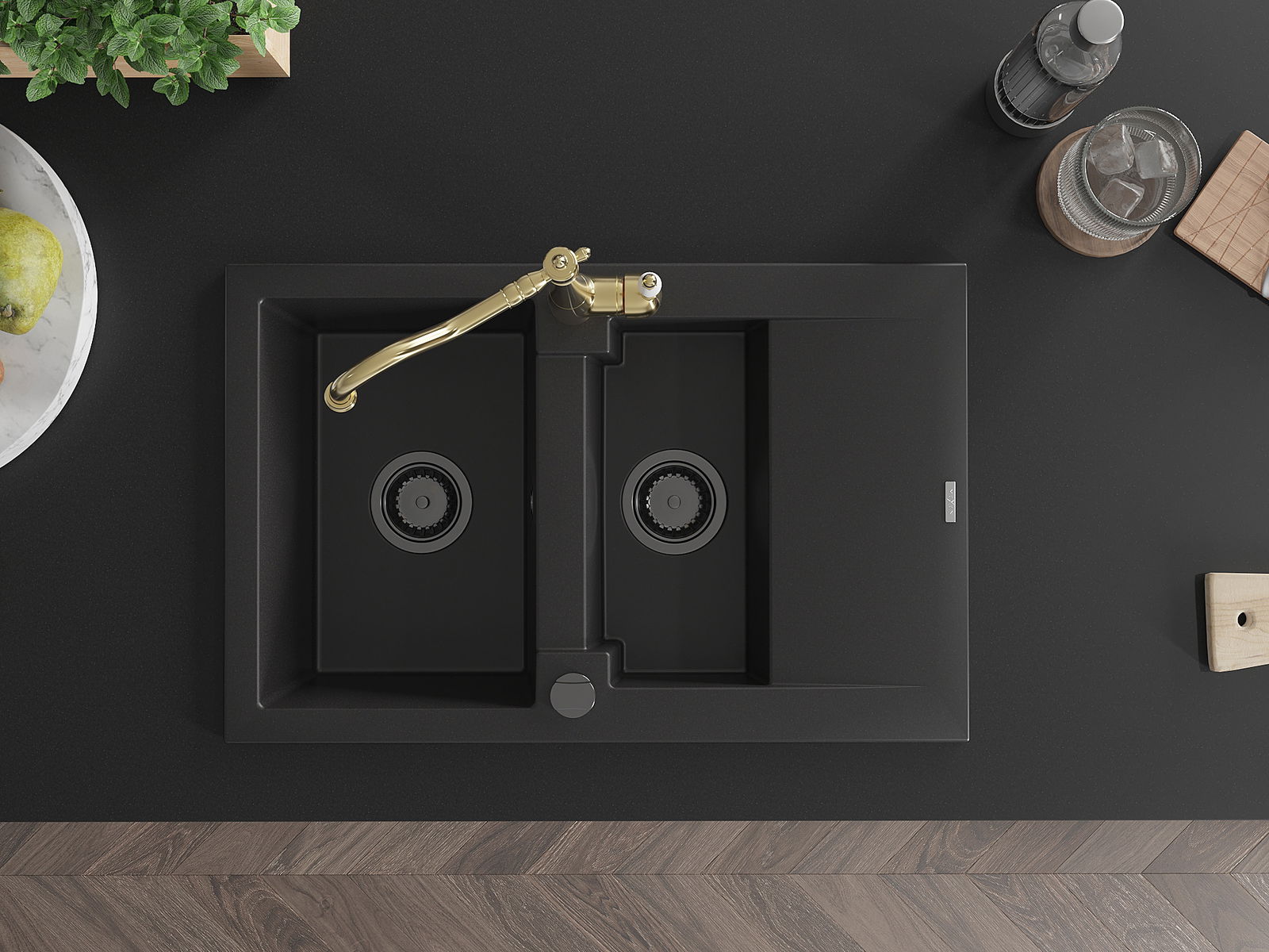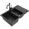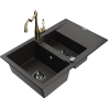 Mexen Gaspar zlewozmywak granitowy 1,5-komorowy z ociekaczem i baterią kuchenną Carla, czarny - 6507-77-670700-50-B
