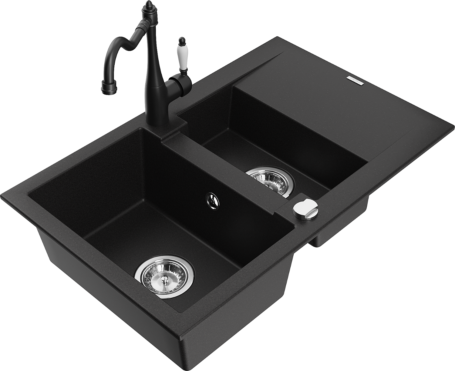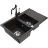 Mexen Gaspar zlewozmywak granitowy 1,5-komorowy z ociekaczem i baterią kuchenną Carla, czarny - 6507-77-670700-70