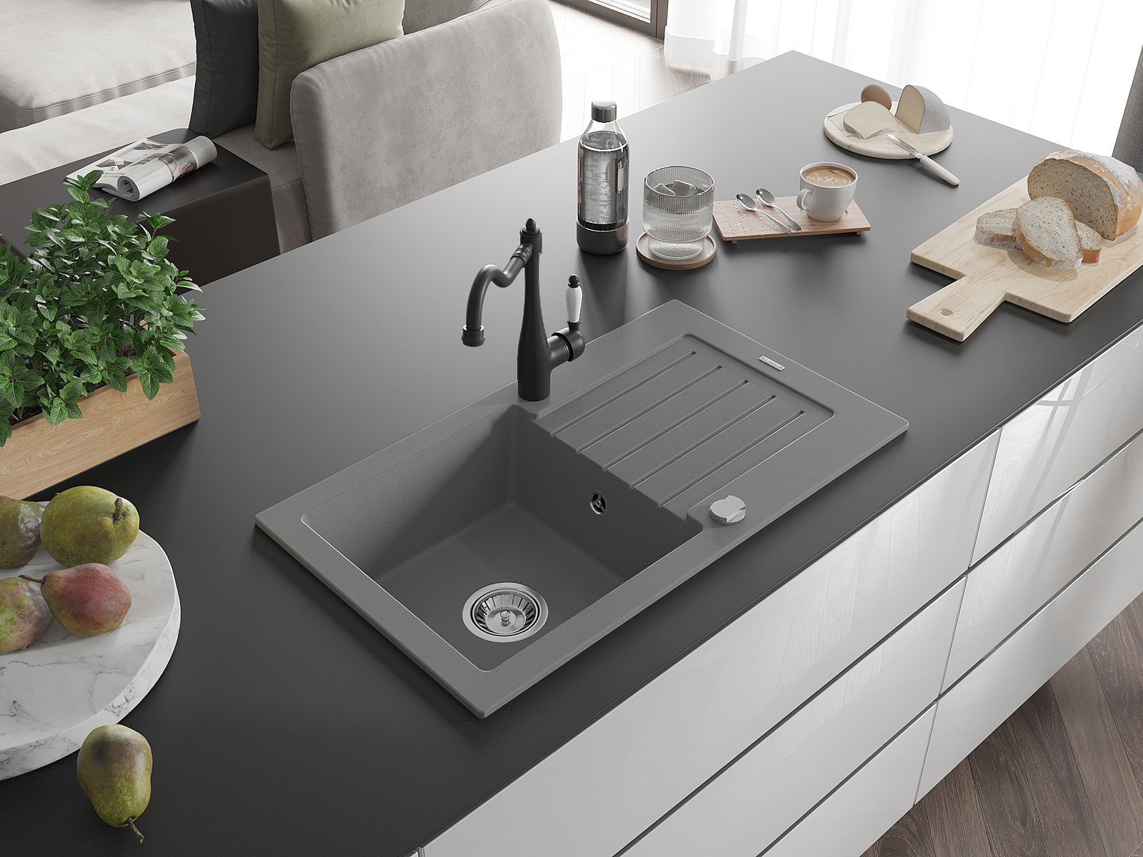 Zlewozmywak został wykonany z wysokiej jakości granitu. Stanowi eleganckie, a przede wszystkim praktyczne uzupełnienie każdej kuchni, niezależnie od jej stylu. Wysoka jakość oraz trwałość granitu zapewniają wieloletnie użytkowanie.