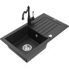 Mexen Pablo zlewozmywak granitowy 1-komorowy z ociekaczem i baterią kuchenną Carla, szary - 6510-71-670700-70