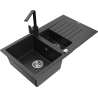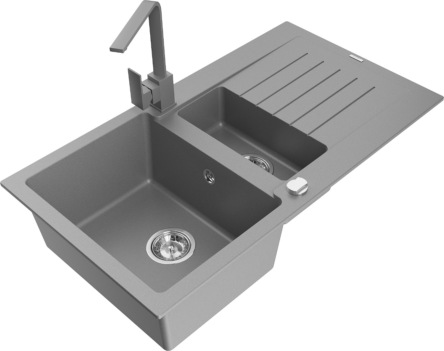 Mexen Matias zlewozmywak granitowy 1,5-komorowy z ociekaczem i baterią kuchenną Rita, szary - 6502-71-670300-71