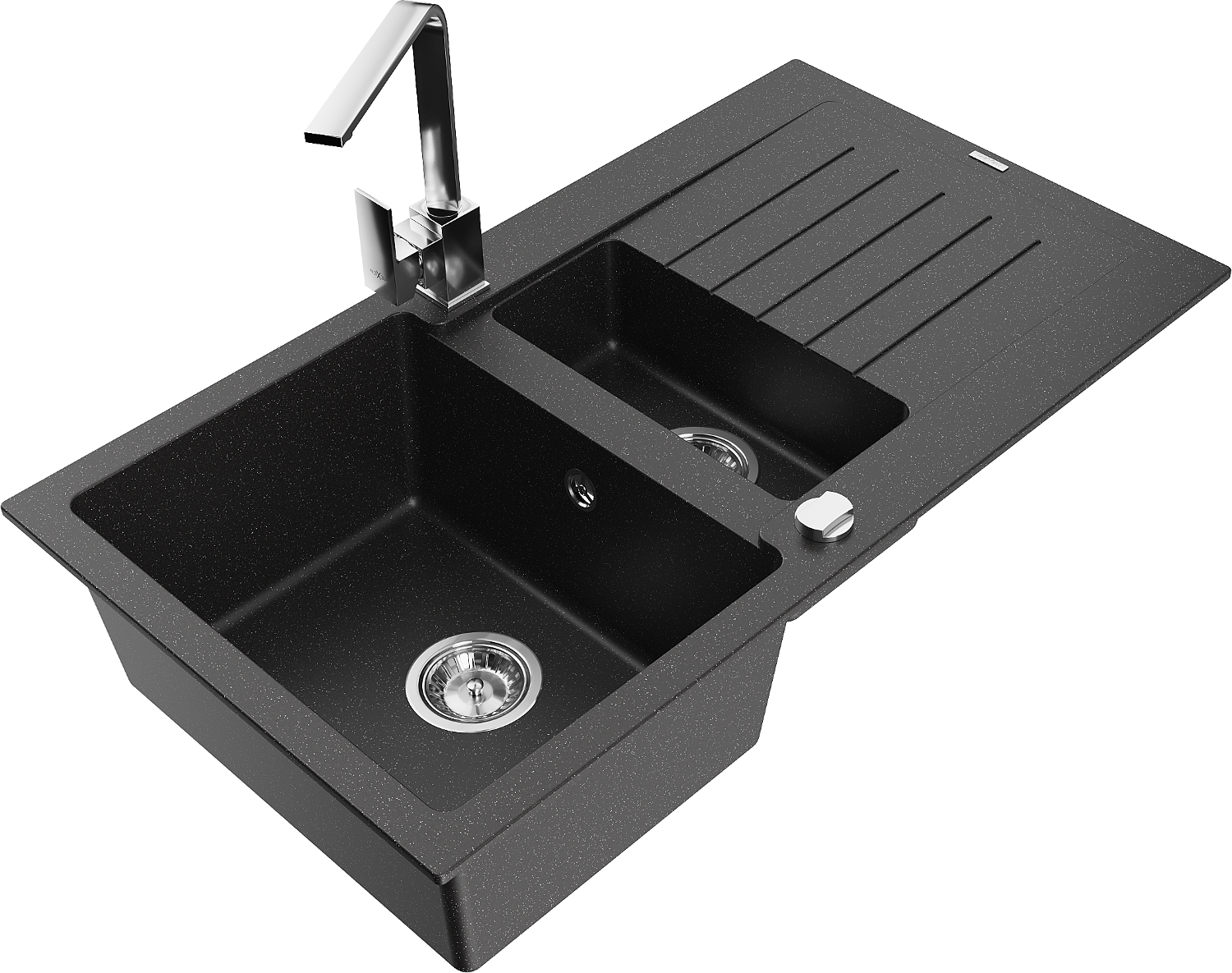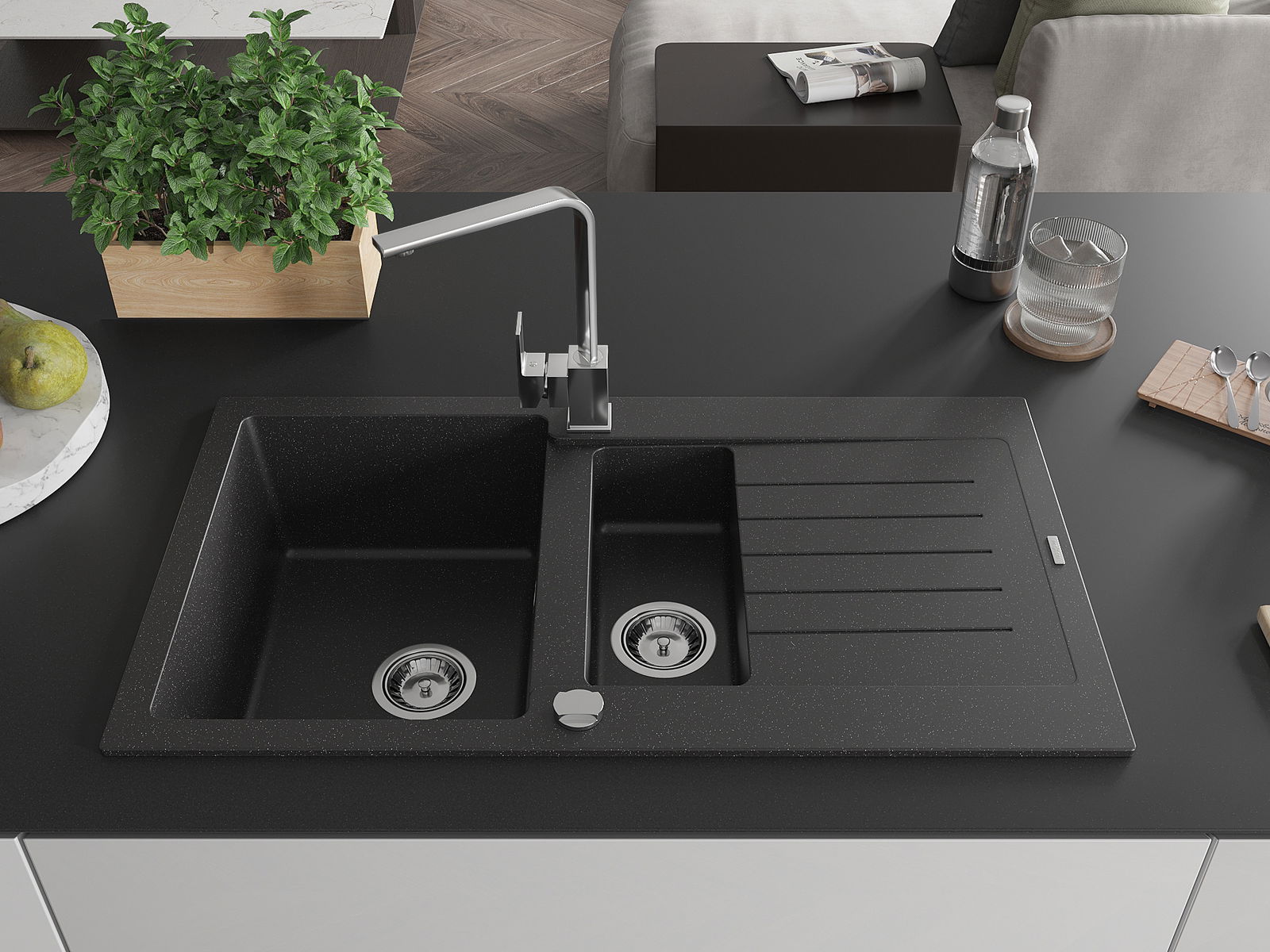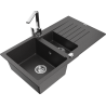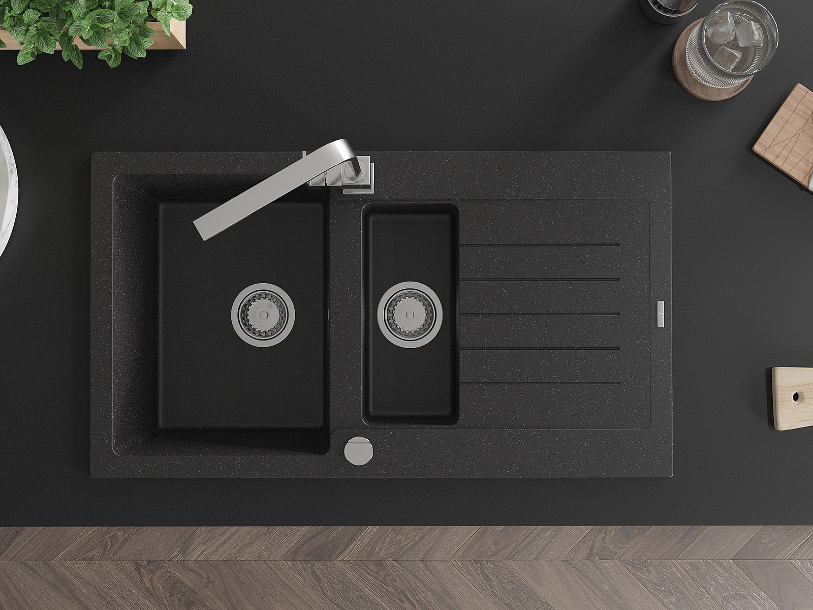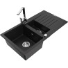 Mexen Matias zlewozmywak granitowy 1,5-komorowy z ociekaczem i baterią kuchenną Rita, czarny/srebrny metalik - 6502-73-670300-00