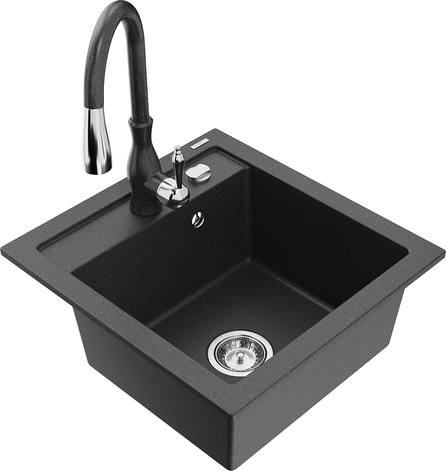 Mexen Vito zlewozmywak granitowy 1-komorowy z baterią kuchenną Savita, czarny nakrapiany - 6503-76-672601-76