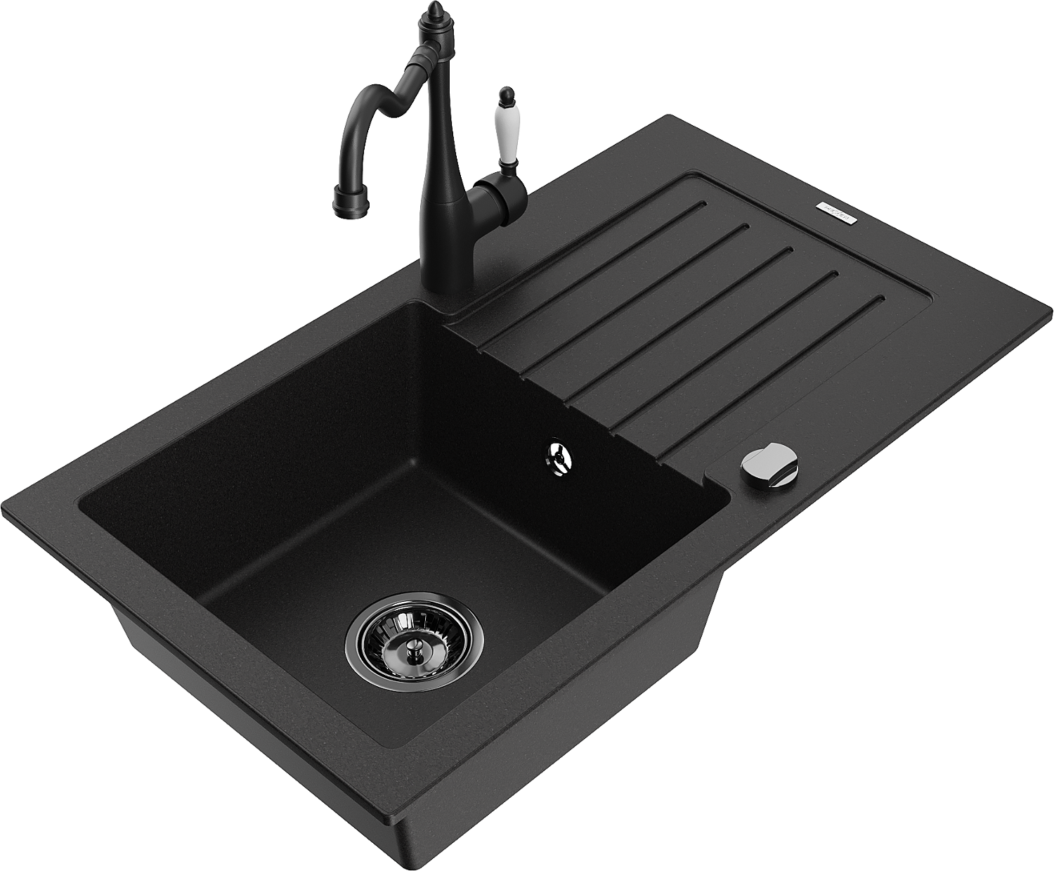 Mexen Pablo zlewozmywak granitowy 1-komorowy z ociekaczem i baterią kuchenną Carla, czarny - 6510-77-670700-70-B