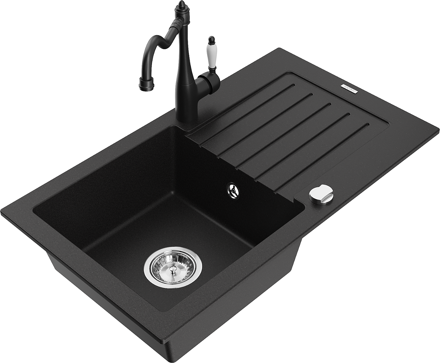 Mexen Pablo zlewozmywak granitowy 1-komorowy z ociekaczem i baterią kuchenną Carla, czarny - 6510-77-670700-70