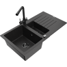 Mexen Matias zlewozmywak granitowy 1,5-komorowy z ociekaczem i baterią kuchenną Duero, czarny nakrapiany - 6502-76-671600-70-B