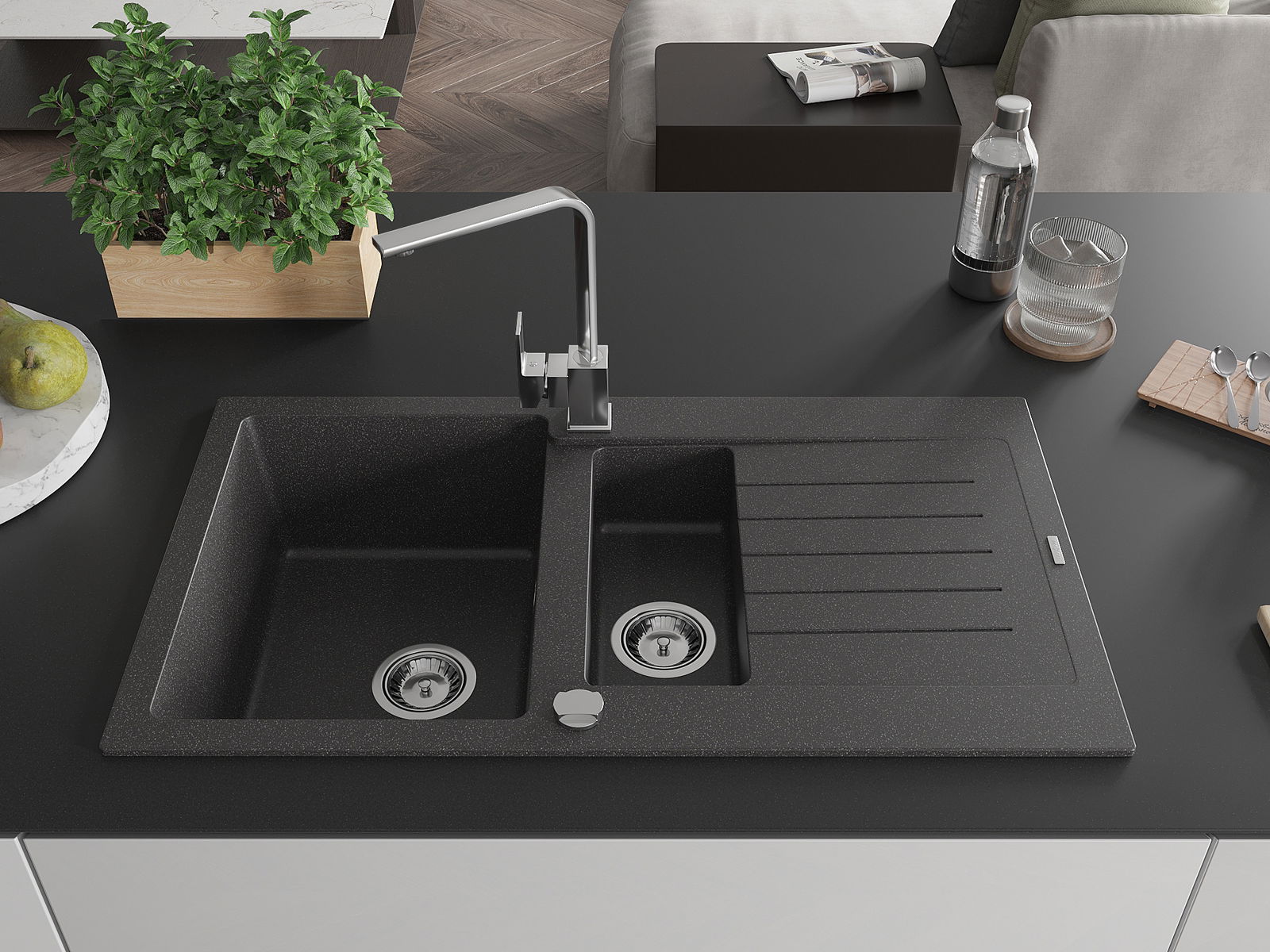Zlewozmywak został wykonany z wysokiej jakości granitu. Stanowi eleganckie, a przede wszystkim praktyczne uzupełnienie każdej kuchni, niezależnie od jej stylu. Wysoka jakość oraz trwałość granitu zapewniają wieloletnie użytkowanie.