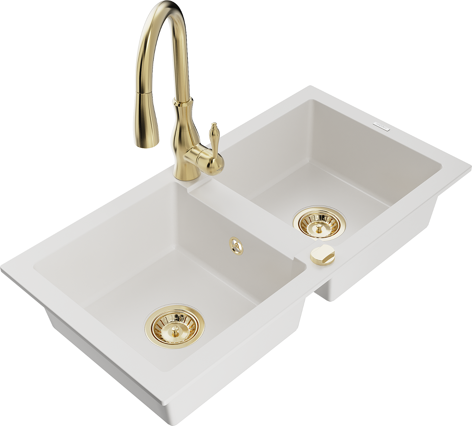 Mexen Mario zlewozmywak granitowy 2-komorowy z baterią kuchenną Savita, biały - 6504-20-672601-50