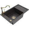 Mexen Elias zlewozmywak granitowy 1-komorowy z ociekaczem i baterią kuchenną Carla, czarny/srebrny metalik - 6511-73-670700-50