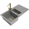 Mexen Matias zlewozmywak granitowy 1,5-komorowy z ociekaczem i baterią kuchenną Rita, czarny - 6502-77-670300-50