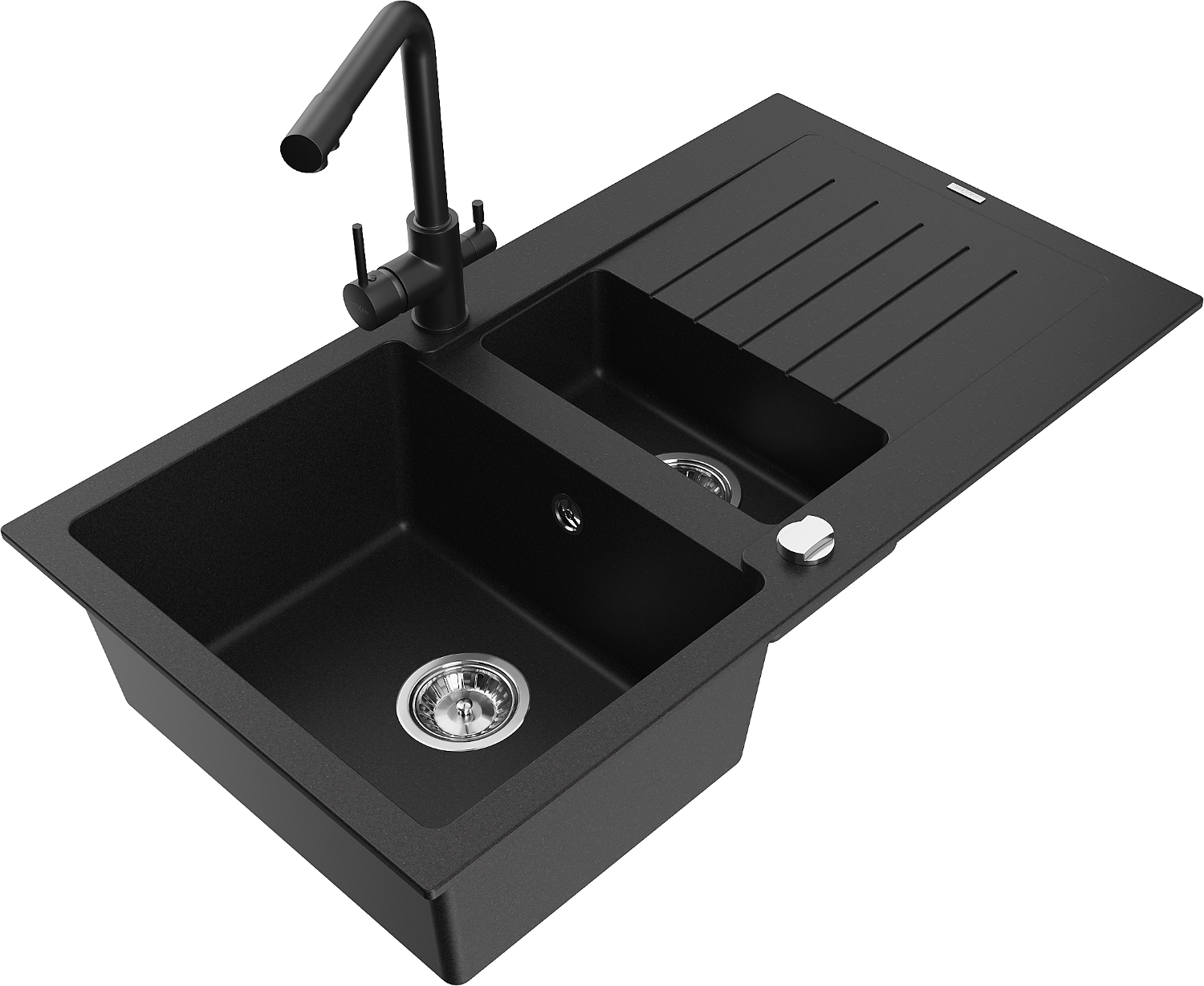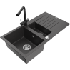 Mexen Matias zlewozmywak granitowy 1,5-komorowy z ociekaczem i baterią kuchenną Duero, czarny - 6502-77-671600-70