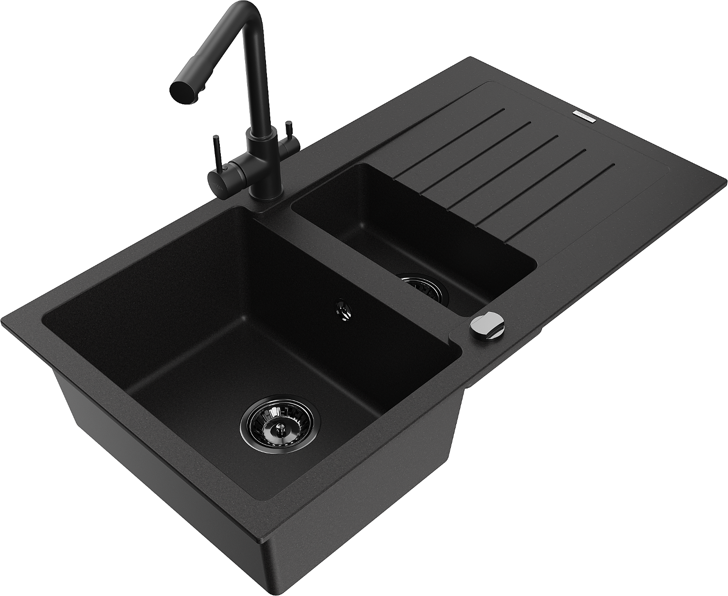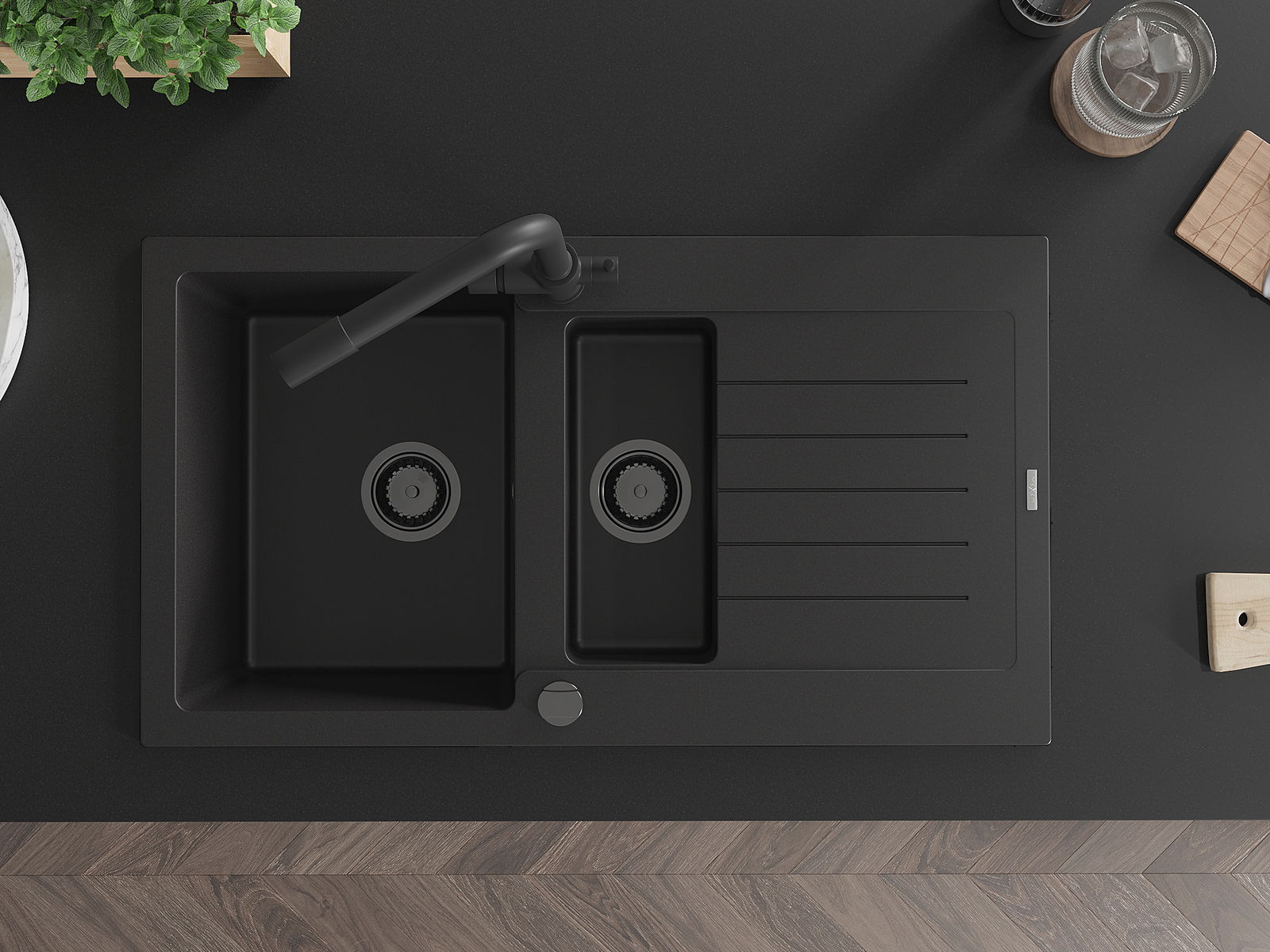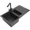 Mexen Matias zlewozmywak granitowy 1,5-komorowy z ociekaczem i baterią kuchenną Duero, czarny - 6502-77-671600-70-B