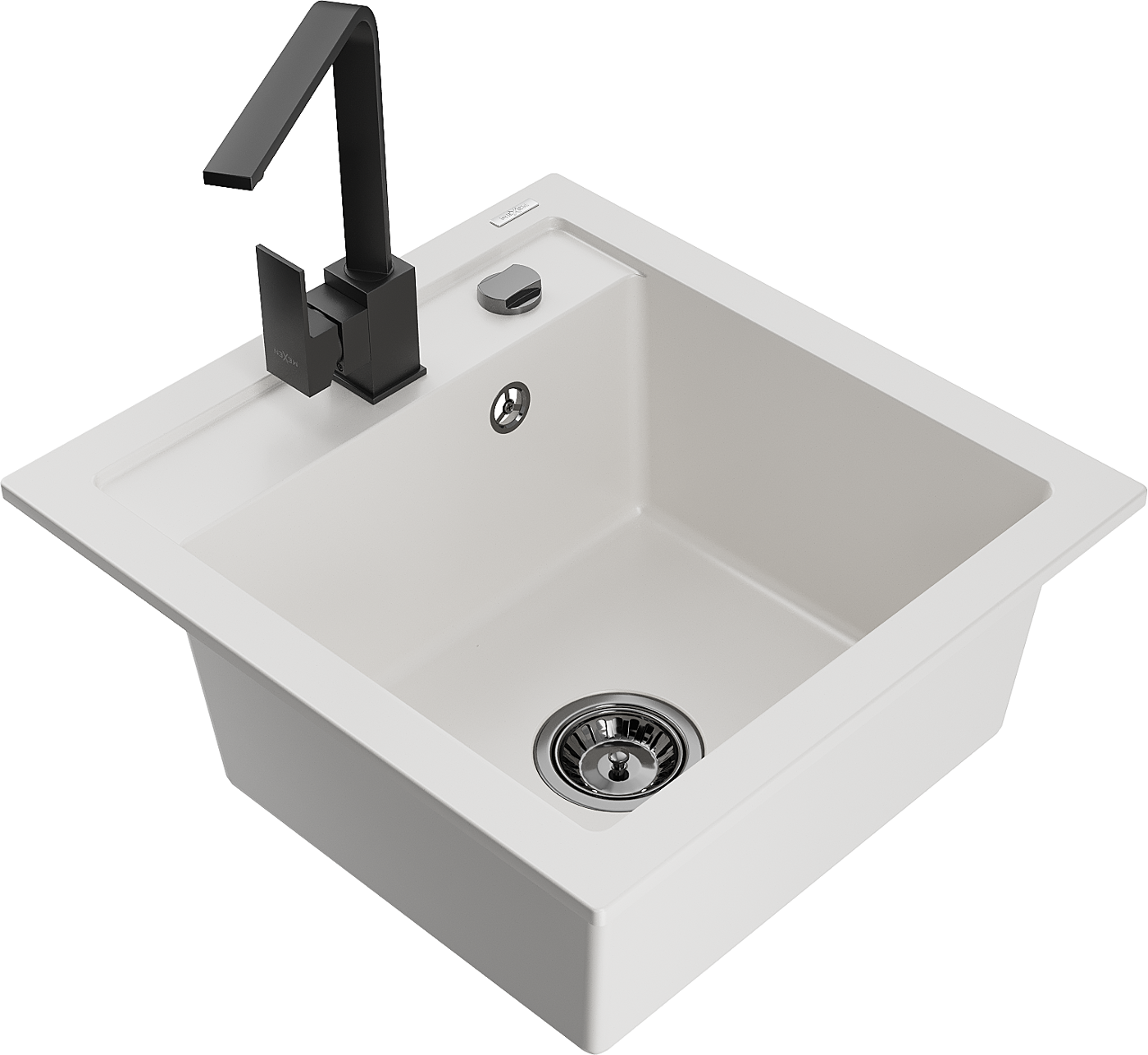Mexen Vito zlewozmywak granitowy 1-komorowy z baterią kuchenną Rita, biały - 6503-20-670300-70