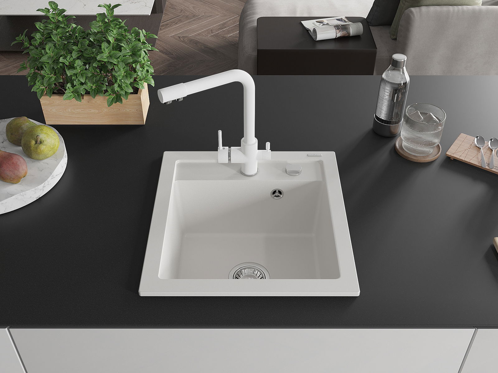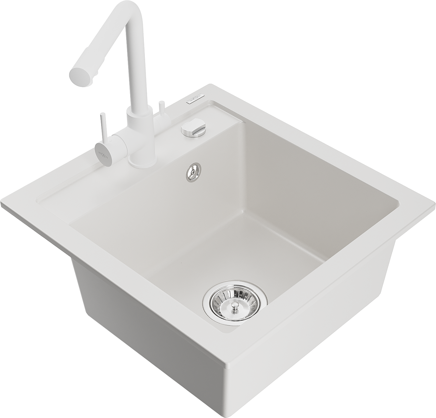 Mexen Vito zlewozmywak granitowy 1-komorowy z baterią kuchenną Duero, biały - 6503-20-671600-20