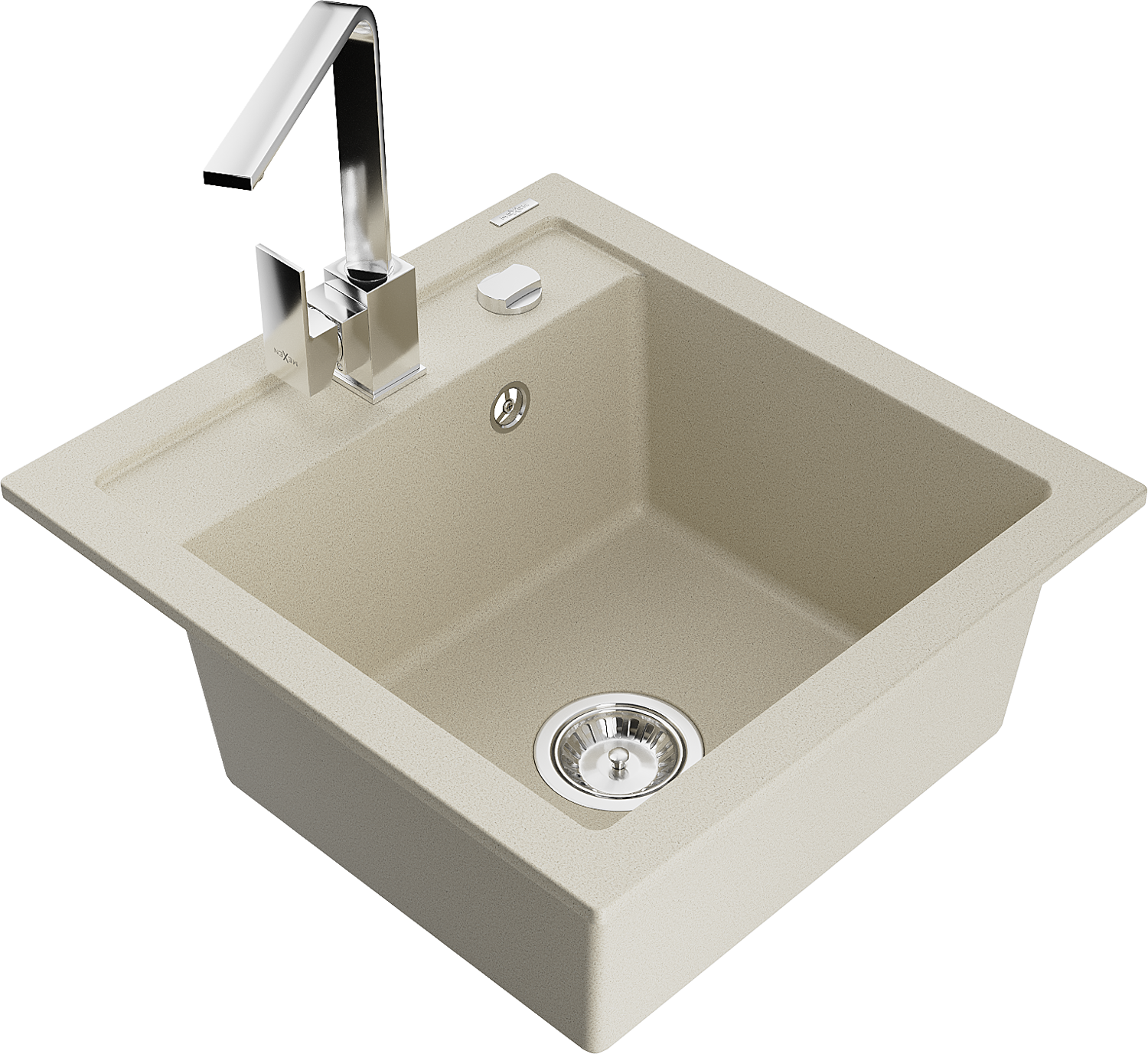 Mexen Vito zlewozmywak granitowy 1-komorowy z baterią kuchenną Rita, beżowy - 6503-69-670300-00